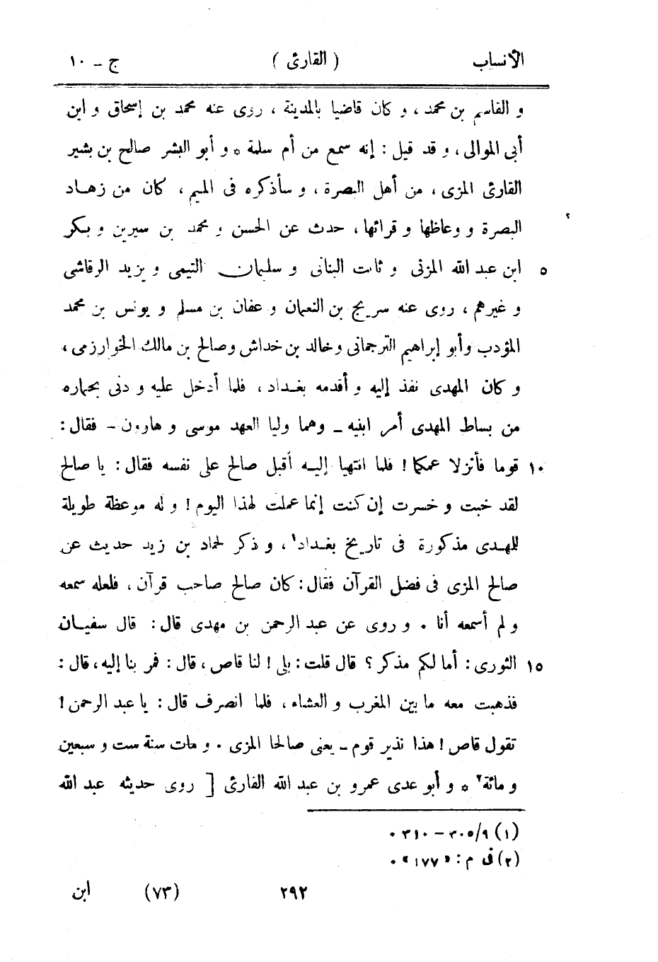 فذهبت معه ما بين المغرب والعشاء، فلما انصرف قال: يا عبد الرحمن! تقول قاص! هذا نذير قوم- يعنى صالحا المزي. ومات سنة ست وسبعين ومائة [2] وأبو عدي عمرو بن عبد الله القارئ [روى حديثه عبد الله