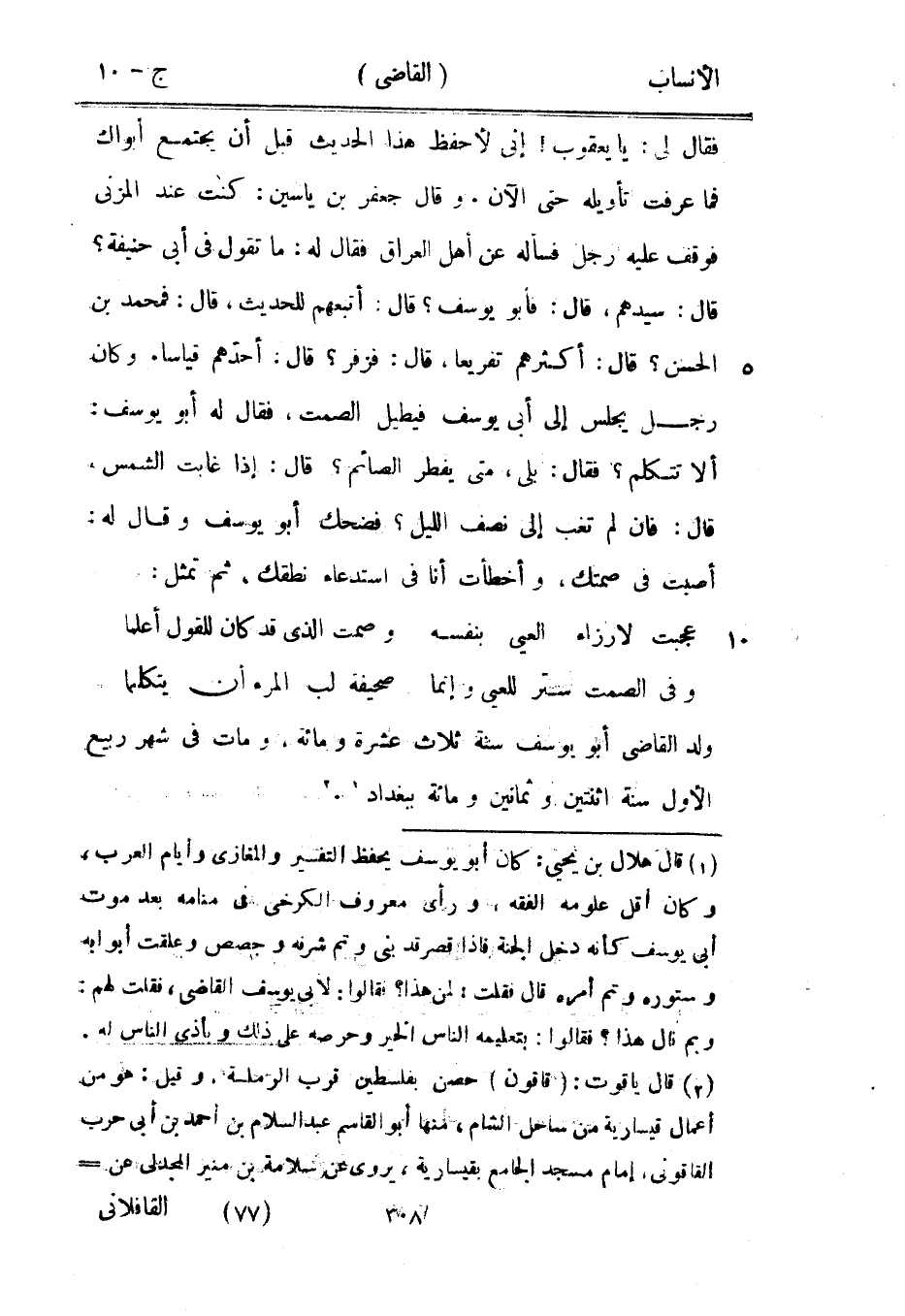 [1] قال هلال بن يحيى: كان أبو يوسف يحفظ التفسير والمغازي وأيام العرب، وكان أقل علومه الفقه، ورأى معروف الكرخي في منامه بعد موت أبى يوسف كأنه دخل الجنة فإذا قصر قد بنى وتم شرفه وجصص وعلقت أبوابه وستوره وتم أمره قال فقلت: لمن هذا؟ فقالوا: لأبي يوسف القاضي، فقلت لهم: