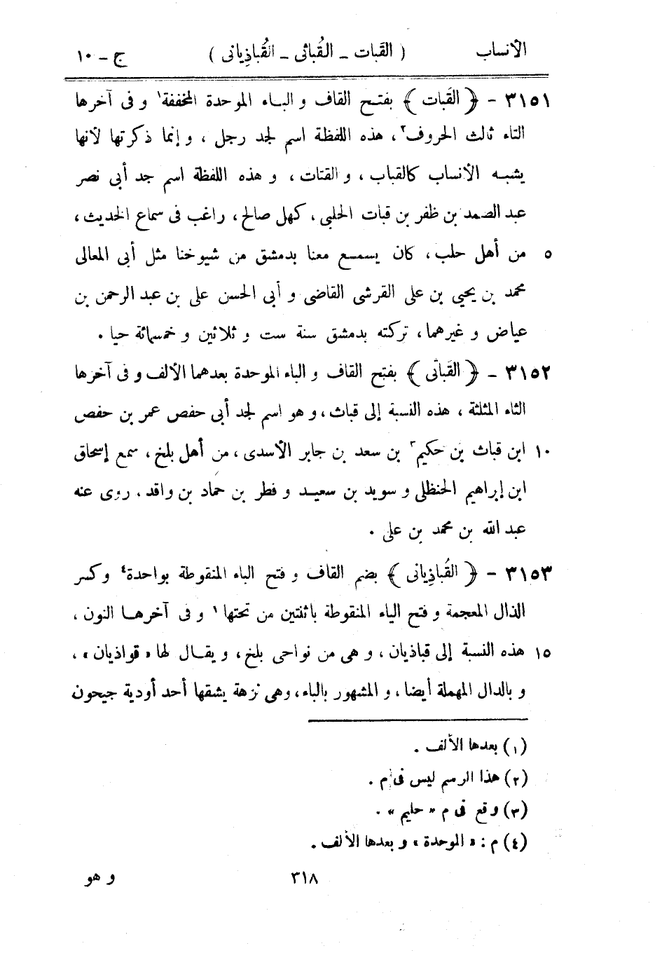 بضم القاف وفتح الباء المنقوطة بواحدة [4] وكسر الذال المعجمة وفتح الياء المنقوطة باثنتين من تحتها [1] وفي آخرها النون، هذه النسبة إلى قباذيان، وهي من نواحي بلخ، ويقال لها «قواذيان» ، وبالدال المهملة أيضا، والمشهور بالباء، وهي نزهة يشقها أحد أودية جيحون