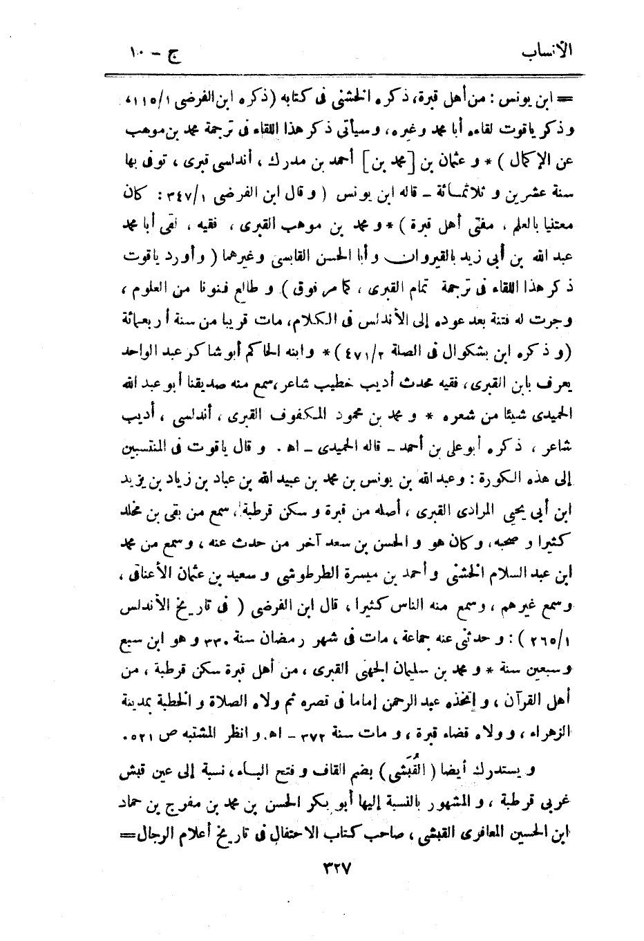 ويستدرك أيضا (القبشي) بضم القاف وفتح الباء، نسبة إلى عين قبش غربي قرطبة، والمشهور بالنسبة إليها أبو بكر الحسن بن محمد بن مفرج بن حماد ابن الحسين المعافري القبشي، صاحب كتاب الاحتفال في تاريخ أعلام الرجال