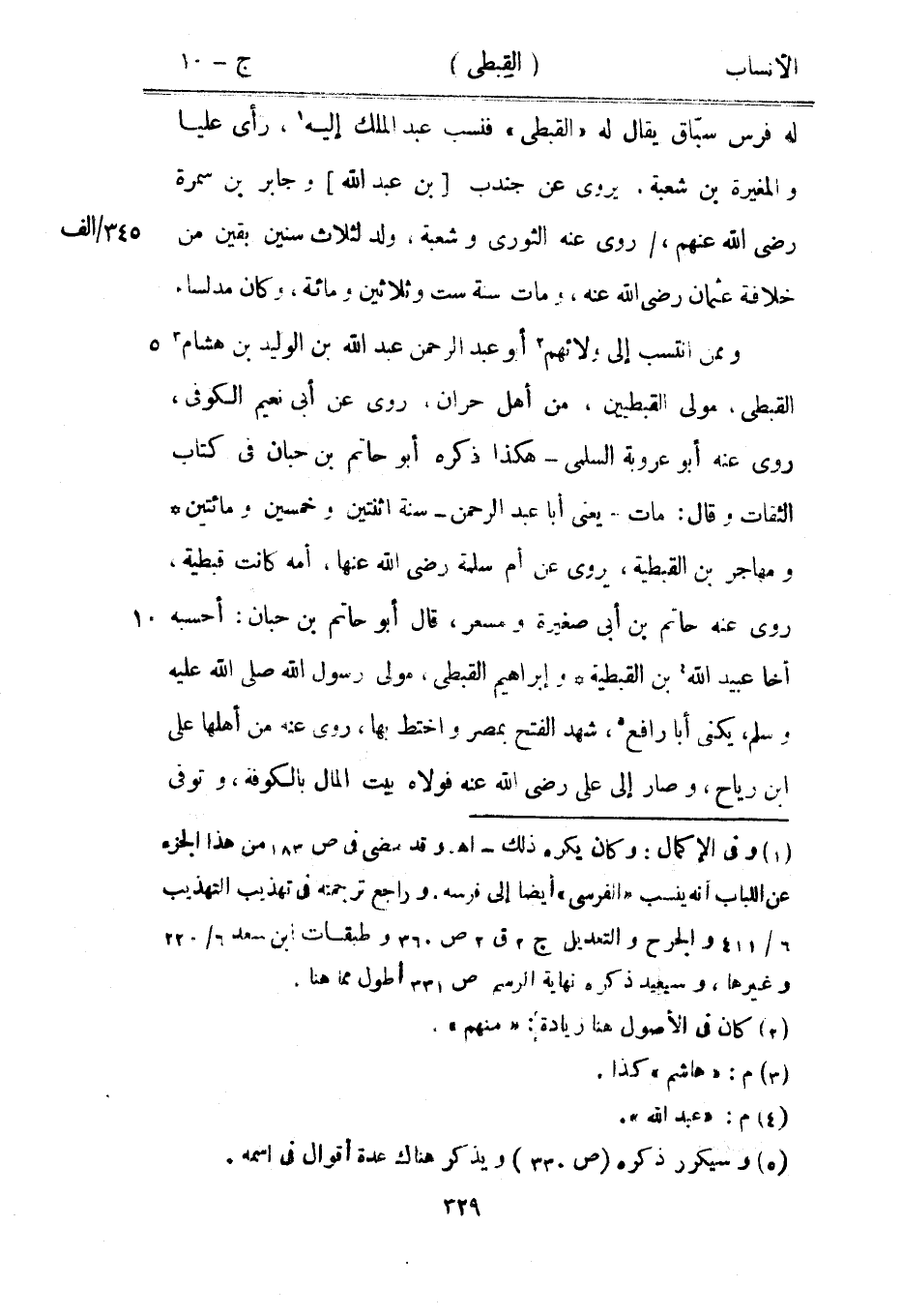 وممن انتسب إلى ولائهم [2] أبو عبد الرحمن عبد الله بن الوليد بن هشام [3] القبطي، مولى القبطيين، من أهل حران، روى عن أبى نعيم الكوفي، روى عنه أبو عروبة السلمي- هكذا ذكره أبو حاتم بن حبان في كتاب الثقات وقال: مات- يعنى أبا عبد الرحمن- سنة اثنتين وخمسين ومائتين ومهاجر بن القبطية، يروى عن أم سلمة رضى الله عنها، أمه كانت قبطية، روى عنه حاتم بن أبى صغيرة ومسعر، قال أبو حاتم بن حبان: أحسبه أخا عبيد الله [4] بن القبطية وإبراهيم القبطي، مولى رسول الله صلى الله عليه وسلم، يكنى أبا رافع [5] ، شهد الفتح بمصر واختط بها، روى عنه من أهلها على ابن رياح، وصار إلى على رضى الله عنه فولاه بيت المال بالكوفة، وتوفى
