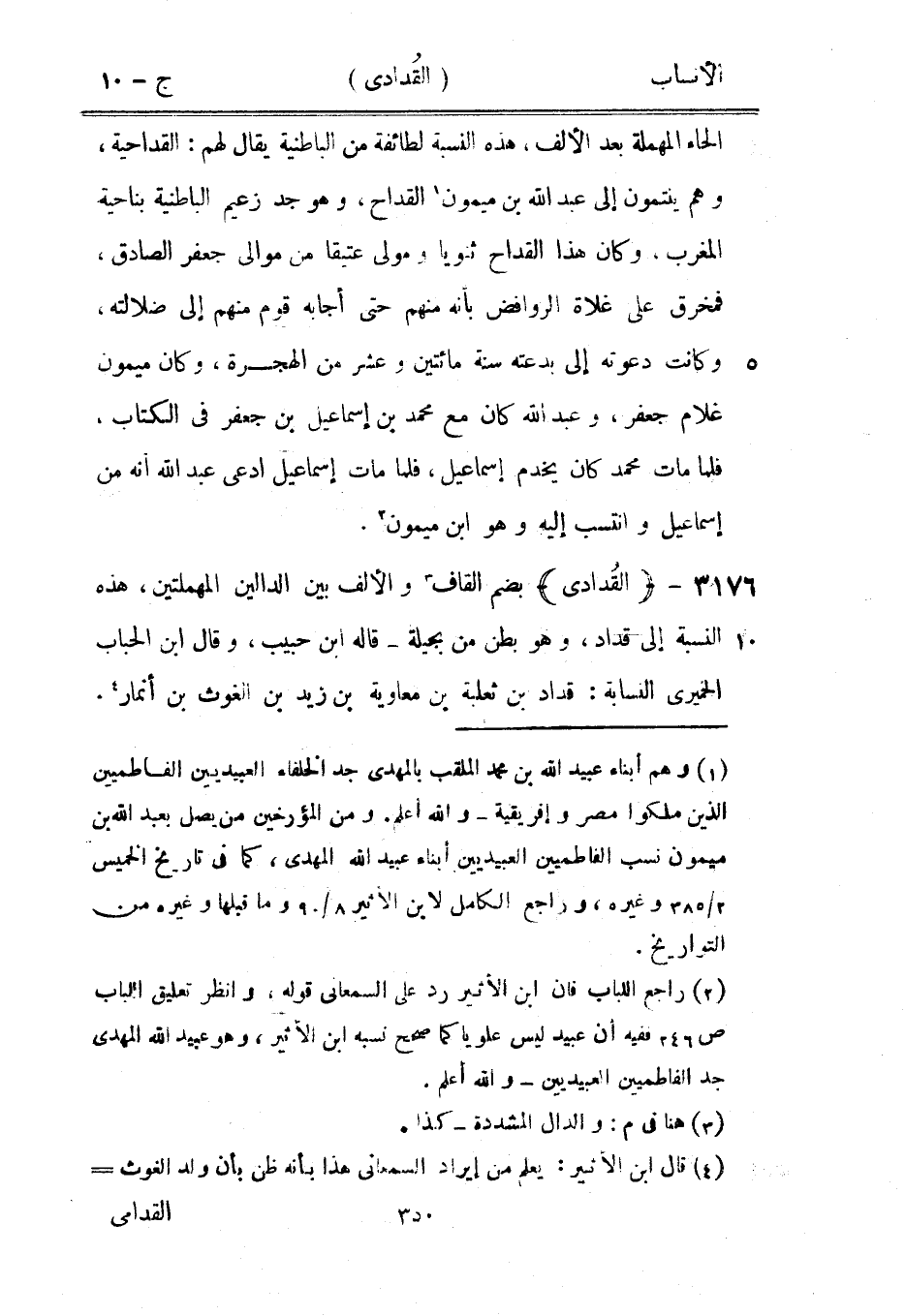 [2] راجع اللباب فان ابن الأثير رد على السمعاني قوله، وانظر تعليق اللباب ص 246 ففيه أن عبيد ليس علويا كما صحح نسبه ابن الأثير، وهو عبيد الله المهدي جد الفاطميين العبيديين- والله أعلم.