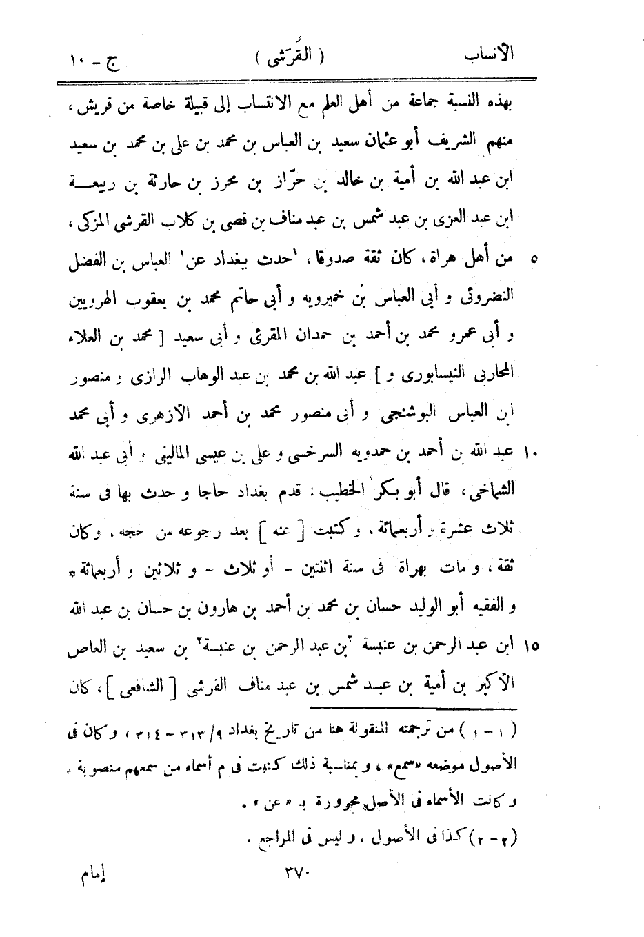 بهذه النسبة جماعة من أهل العلم مع الانتساب إلى قبيلة خاصة من قريش، منهم الشريف أبو عثمان سعيد بن العباس بن محمد بن على بن محمد بن سعيد ابن عبد الله بن أمية بن خالد بن حرّاز بن محرز بن حارثة بن ربيعة ابن عبد العزى بن عبد شمس بن عبد مناف بن قصي بن كلاب القرشي المزكي، من أهل هراة، كان ثقة صدوقا، [1] حدث ببغداد عن [1] العباس بن الفضل النضروئى وأبى العباس بن خميرويه وأبى حاتم محمد بن يعقوب الهرويين وأبى عمرو محمد بن أحمد بن حمدان المقرئ وأبى سعيد [محمد بن العلاء المحاربي النيسابورىّ و] عبد الله بن محمد بن عبد الوهاب الرازيّ ومنصور ابن العباس البوشنجي وأبى منصور محمد بن أحمد الأزهري وأبى محمد عبد الله بن أحمد بن حمدويه السرخسي وعلى بن عيسى الماليني وأبى عبد الله الشماخي، قال أبو بكر الخطيب: قدم بغداد حاجا وحدث بها في سنة ثلاث عشرة وأربعمائة، وكتبت [عنه] بعد رجوعه من حجه، وكان ثقة، ومات بهراة في سنة اثنتين- أو ثلاث- وثلاثين وأربعمائة والفقيه أبو الوليد حسان بن محمد بن أحمد بن هارون بن حسان بن عبد الله ابن عبد الرحمن بن عنبسة [2] بن عبد الرحمن بن عنبسة [2] بن سعيد بن العاص الأكبر بن أمية بن عبد شمس بن عبد مناف القرشي [الشافعيّ] ، كان