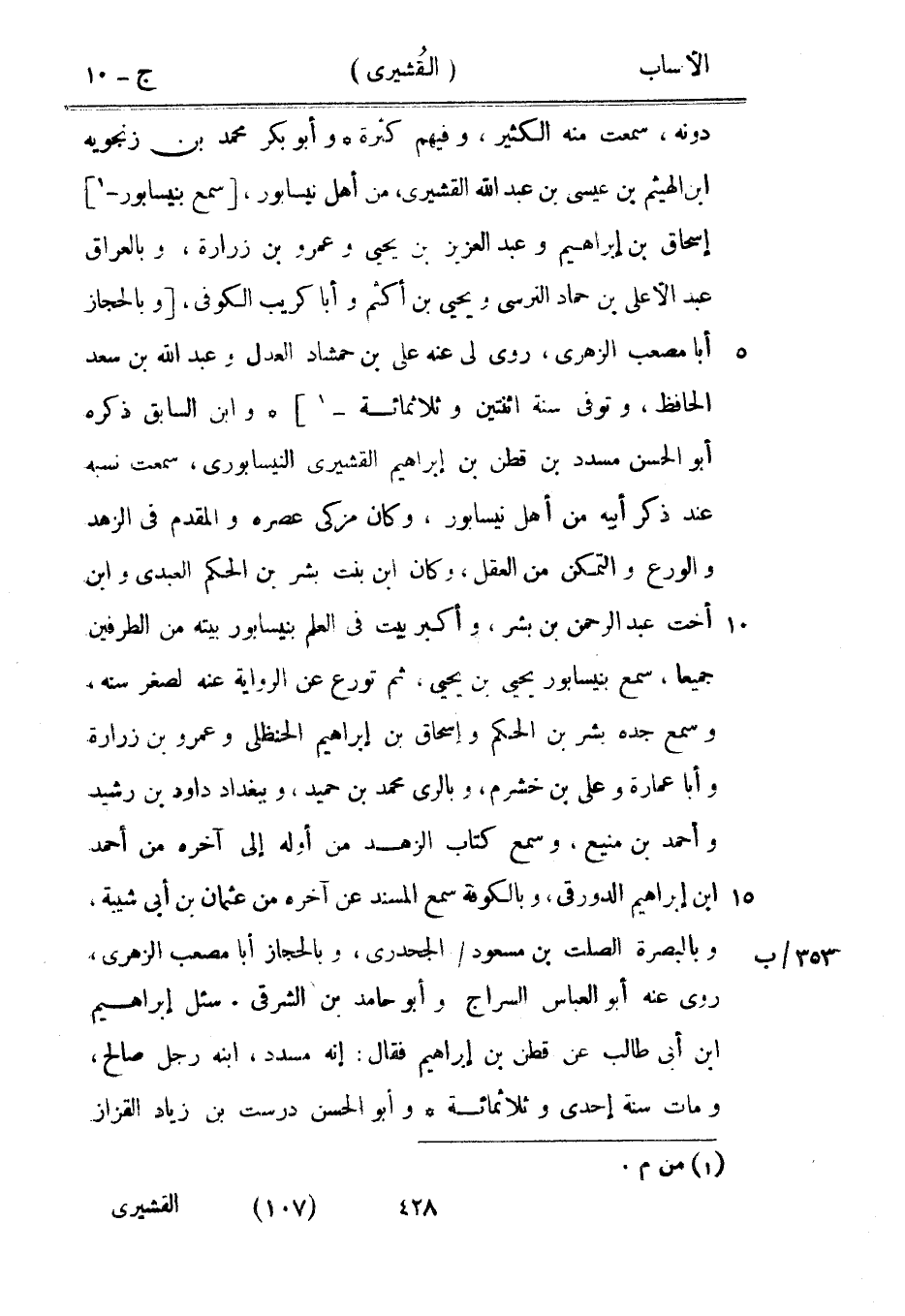 دونه، سمعت منه الكثير، وفيهم كثرة وأبو بكر محمد بن زنجويه ابن الهيثم بن عيسى بن عبد الله القشيري، من أهل نيسابور، [سمع بنيسابور-[1]] إسحاق بن إبراهيم وعبد العزيز بن يحيى وعمرو بن زرارة، وبالعراق عبد الأعلى بن حماد النرسي ويحيى بن أكثم وأبا كريب الكوفي، [وبالحجاز أبا مصعب الزهري، روى لي عنه على بن حمشاد العدل وعبد الله بن سعد الحافظ، وتوفى سنة اثنتين وثلاثمائة-[1]] وابن السابق ذكره أبو الحسن مسدد بن قطن بن إبراهيم القشيري النيسابورىّ، سمعت نسبه عند ذكر أبيه من أهل نيسابور، وكان مزكى عصره والمقدم في الزهد والورع والتمكن من العقل، وكان ابن بنت بشر بن الحكم العبديّ وابن أخت عبد الرحمن بن بشر، وأكبر بيت في العلم بنيسابور بيته من الطرفين جميعا، سمع بنيسابور يحيى بن يحيى، ثم تورع عن الرواية عنه لصغر سنه، وسمع جده بشر بن الحكم وإسحاق بن إبراهيم الحنظليّ وعمرو بن زرارة وأبا عمارة وعلى بن خشرم، وبالري محمد بن حميد، وببغداد داود بن رشيد وأحمد بن منيع، وسمع كتاب الزهد من أوله إلى آخره من أحمد ابن إبراهيم الدورقي، وبالكوفة سمع المسند عن آخره من عثمان بن أبى شيبة، وبالبصرة الصلت بن مسعود/ الجحدري، وبالحجاز أبا مصعب الزهري، روى عنه أبو العباس السراج وأبو حامد بن الشرقي. سئل إبراهيم ابن أبى طالب عن قطن بن إبراهيم فقال: إنه مسدد، ابنه رجل صالح، ومات سنة إحدى وثلاثمائة وأبو الحسن درست بن زياد القزاز