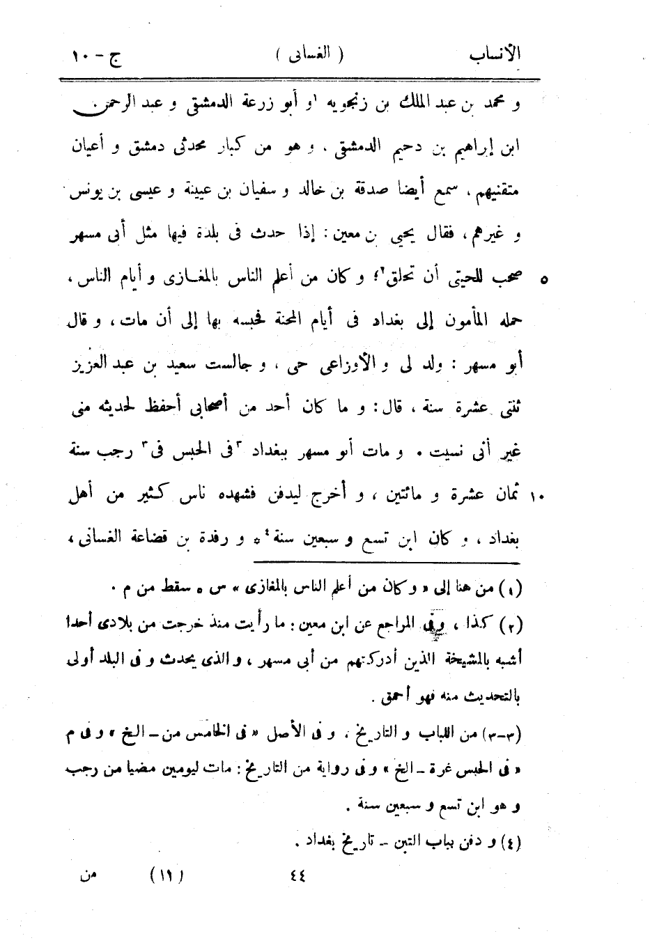[2] كذا، وفي المراجع عن ابن معين: ما رأيت منذ خرجت من بلادي أحدا أشبه بالمشيخة الذين أدركتهم من أبى مسهر، والّذي يحدث وفي البلد أولى بالتحديث منه فهو أحمق.