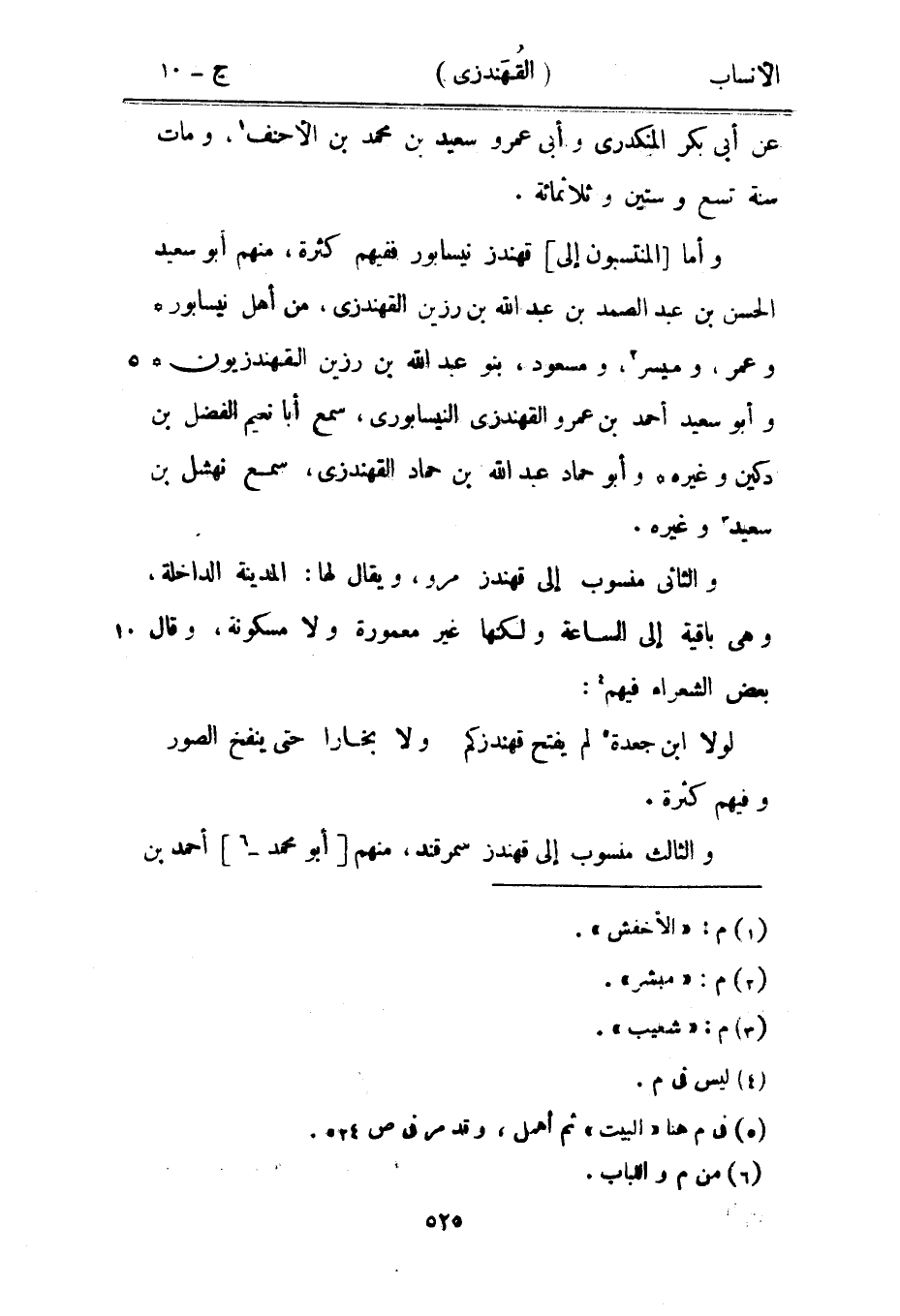 وأما [المنتسبون إلى] قهندز نيسابور ففيهم كثرة، منهم أبو سعيد الحسن بن عبد الصمد بن عبد الله بن رزين القهندزي، من أهل نيسابور وعمر، وميسر [2] ، ومسعود، بنو عبد الله بن رزين القهندزيون وأبو سعيد أحمد بن عمرو القهندزي النيسابورىّ، سمع أبا نعيم الفضل بن دكين وغيره وأبو حماد عبد الله بن حماد القهندزي، سمع نهشل بن سعيد [3] وغيره.
