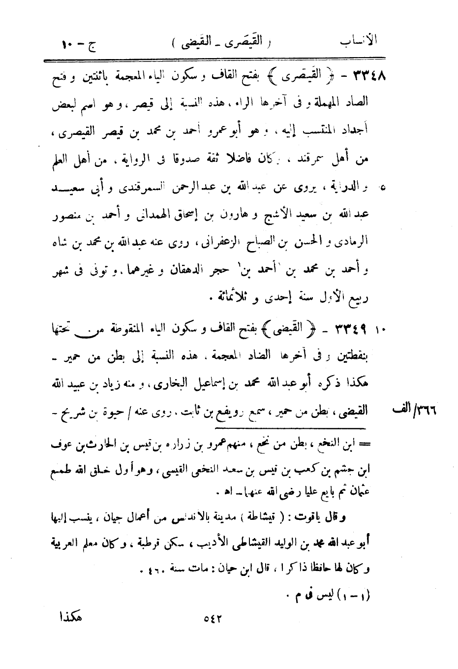 بفتح القاف وسكون الياء المنقوطة من تحتها بنقطتين وفي آخرها الضاد المعجمة، هذه النسبة إلى بطن من حمير- هكذا ذكره أبو عبد الله محمد بن إسماعيل البخاري، ومنه زياد بن عبيد الله القيضى، بطن من حمير، سمع رويفع بن ثابت، روى عنه/ حيوة بن شريح-