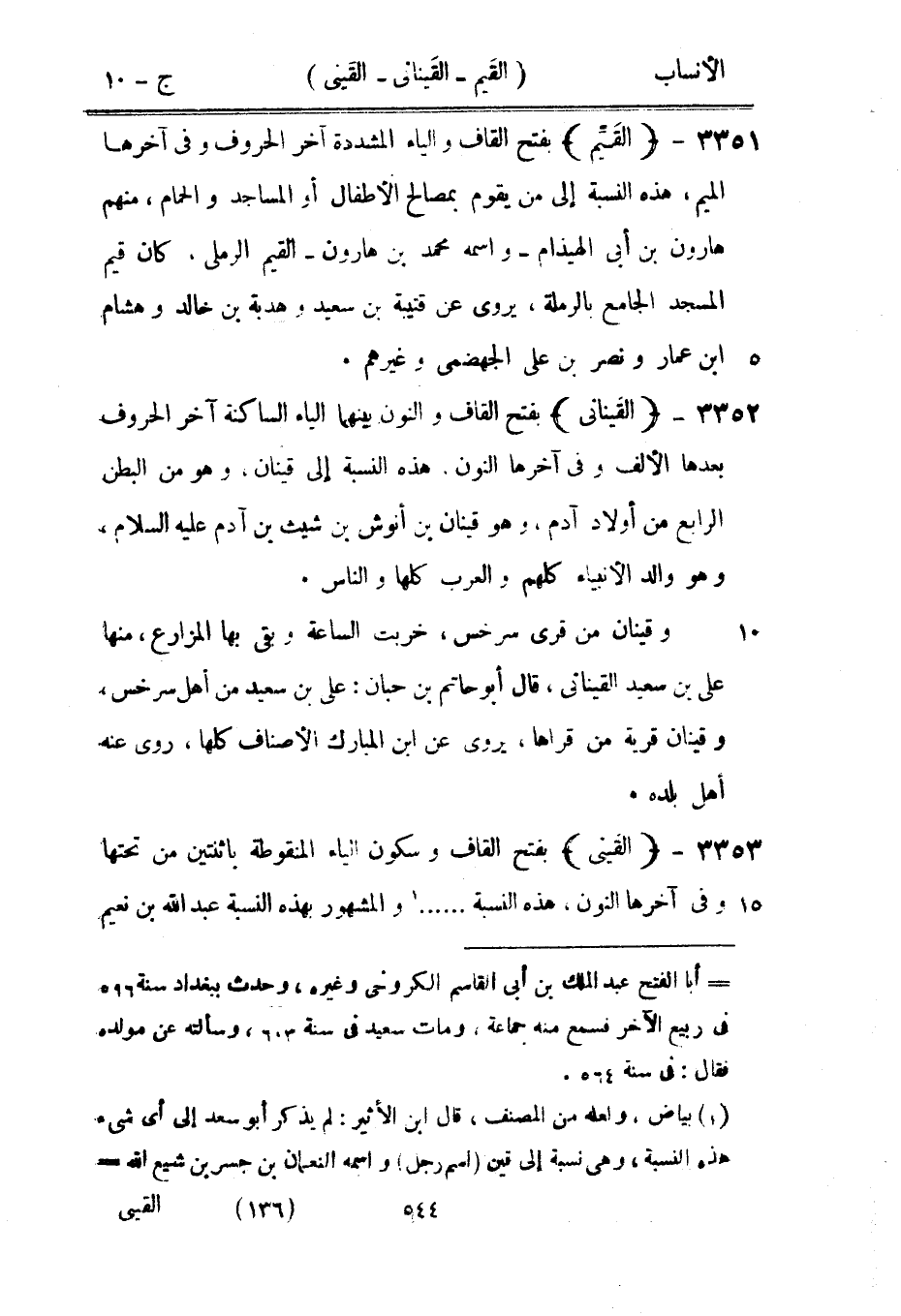 [1] بياض، ولعله من المصنف، قال ابن الأثير: لم يذكر أبو سعد إلى أي شيء هذه النسبة، وهي نسبة إلى قين (اسم رجل) واسمه النعمان بن جسر بن شيع الله