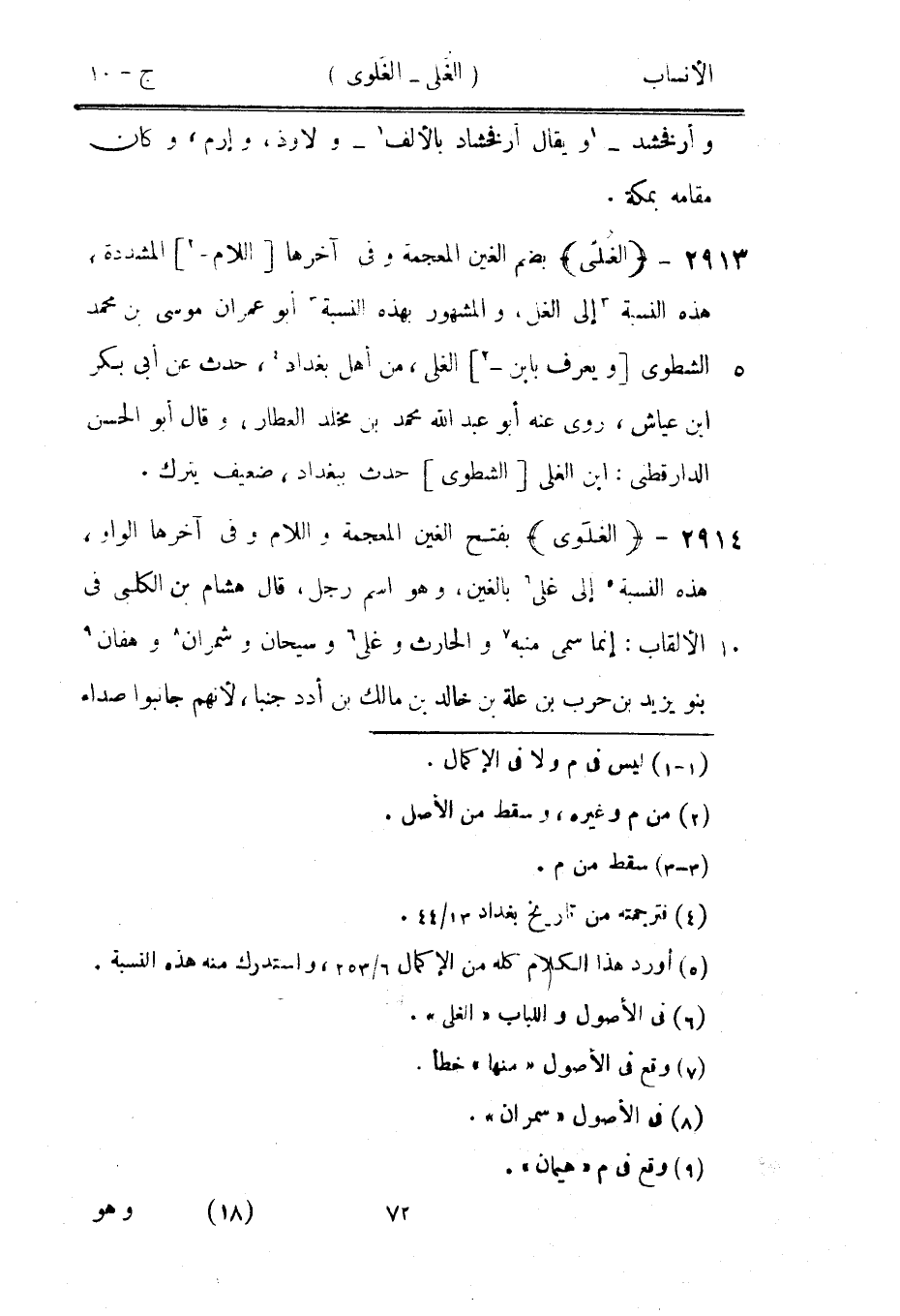 بفتح الغين المعجمة واللام وفي آخرها الواو، هذه النسبة [5] إلى غلى [6] بالغين، وهو اسم رجل، قال هشام بن الكلبي في الألقاب: إنما سمى منبه [7] والحارث وغلى [6] وسيحان وشمران [8] وهفان [9] بنو يزيد بن حرب بن علة بن خالد بن مالك بن أدد جنبا، لأنهم جانبوا صداء