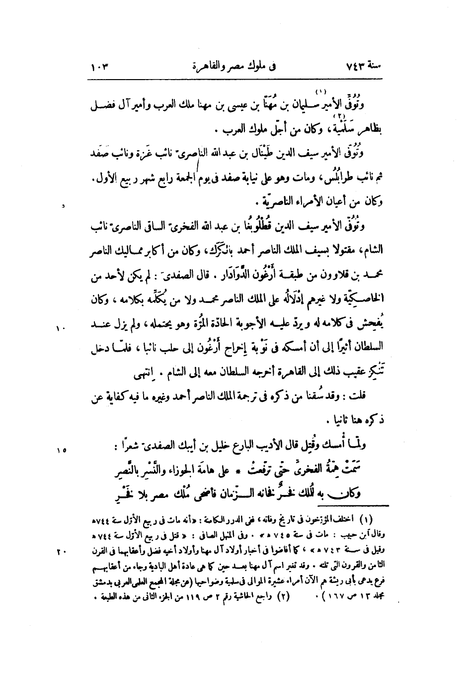وتوفّى الأمير «1» سليمان بن مهنّا بن عيسى بن مهنا ملك العرب وأمير آل فضل بظاهر سلمية «2» ، وكان من أجلّ ملوك العرب.