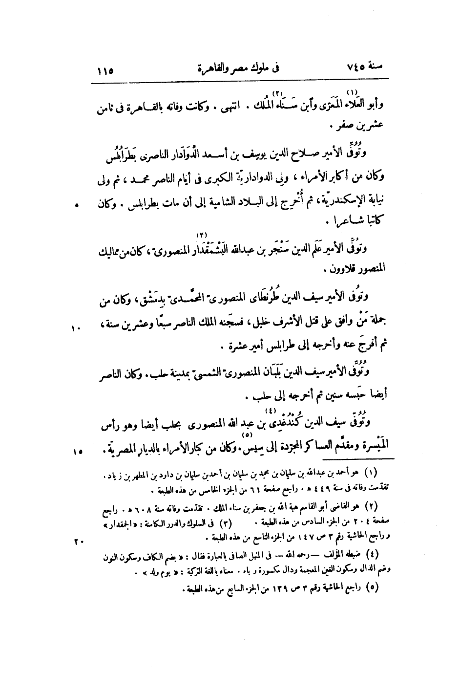 وتوفّى الأمير علم الدين سنجر بن عبد الله البشمقدار «3» المنصورىّ، كان من مماليك المنصور قلاوون.