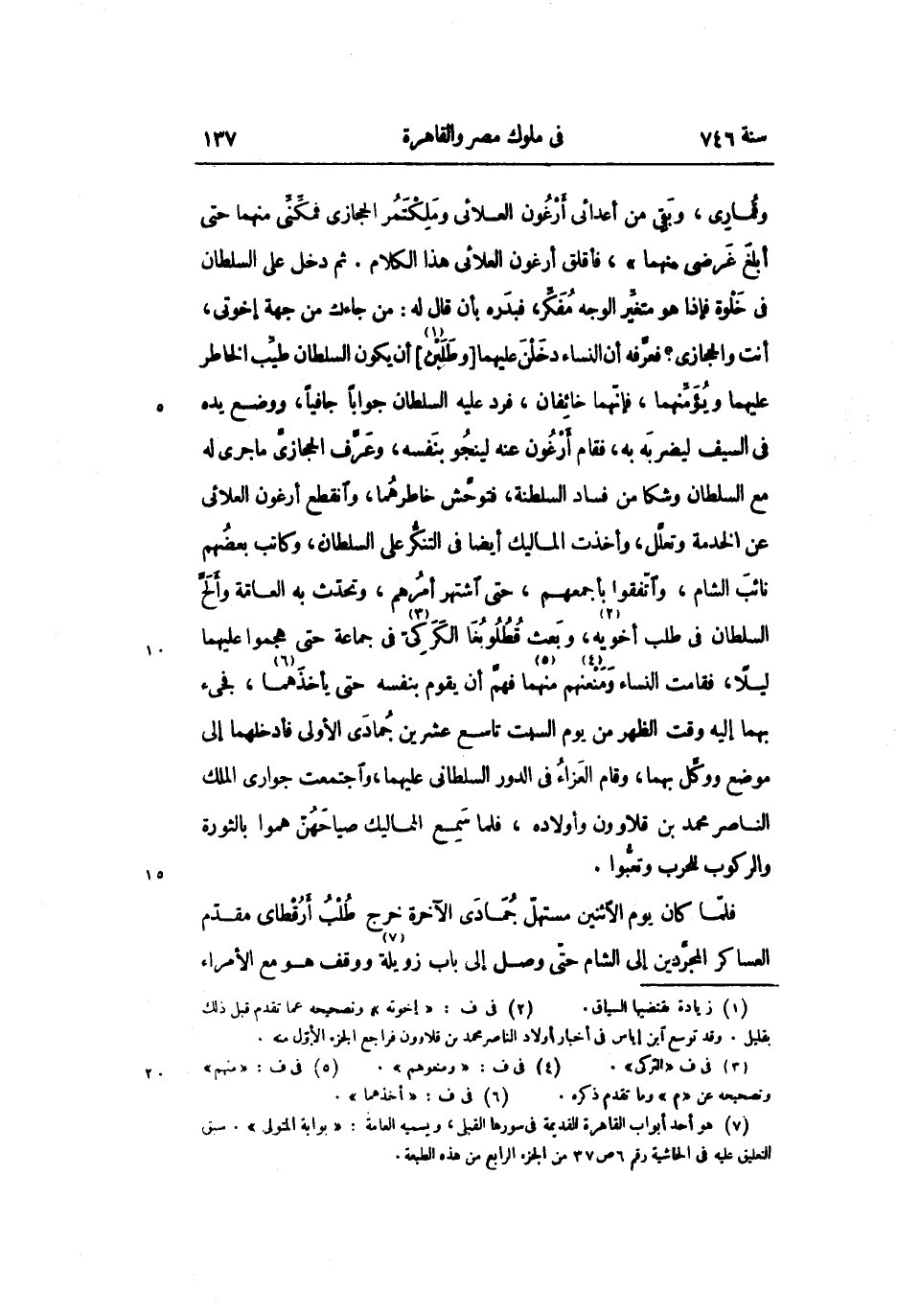 وقمارى، وبقى من أعدائى أرغون العلائى وملكتمر الحجازى فمكّنّى منهما حتى أبلغ غرضى منهما» ، فأقلق أرغون العلائى هذا الكلام. ثم دخل على السلطان فى خلوة فإذا هو متغيّر الوجه مفكّر، فبدره بأن قال له: من جاءك من جهة إخوتى، أنت والحجازى؟ فعرّفه أن النساء دخلن عليهما [وطلبن «1» ] أن يكون السلطان طيّب الخاطر عليهما ويؤمّنهما، فإنّهما خائفان، فرد عليه السلطان جوابا جافيا، ووضع يده فى السيف ليضربه به، فقام أرغون عنه لينجو بنفسه، وعرّف الحجازىّ ما جرى له مع السلطان وشكا من فساد السلطنة، فتوحّش خاطرهما، وانقطع أرغون العلائى عن الخدمة وتعلّل، وأخذت الماليك أيضا فى التنكّر على السلطان، وكاتب بعضهم نائب الشام، واتّفقوا بأجمعهم، حتى اشتهر أمرهم، وتحدّث به العامّة وألحّ السلطان فى طلب أخويه «2» ، وبعث قطلوبغا الكركىّ «3» فى جماعة حتى هجموا عليهما ليلا، فقامت النساء ومنعنهم «4» منهما «5» فهمّ أن يقوم بنفسه حتى يأخذهما «6» ، فجىء بهما إليه وقت الظهر من يوم السبت تاسع عشرين جمادى الأولى فأدخلهما إلى موضع ووكّل بهما، وقام العزاء فى الدور السلطانى عليهما، واجتمعت جوارى الملك الناصر محمد بن قلاوون وأولاده، فلما سمع المماليك صياحهنّ هموا بالثورة والركوب للحرب وتعبّوا.