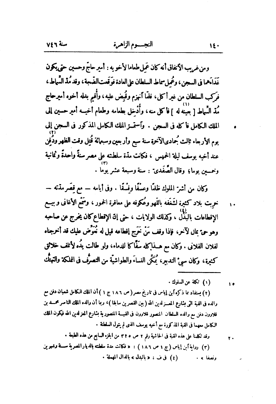 وكان من أشرّ الملوك ظلما وعسفا وفسقا. وفى أيامه- مع قصر مدّته- خربت بلاد كثيرة لشغفه باللهو وعكوفه على معاقرة الخمور، وسمع الأغانى وبيع الإقطاعات بالبذل «4» ، وكذلك الولايات، حتى إنّ الإقطاع كان يخرج عن صاحبه وهو حىّ بمال لآخر، فإذا وقف من خرج إقطاعه قيل له نعوّض عليك قد أخرجناه لفلان الفلانى. وكان مع هذا كله سفّاكا للدماء، ولو طالت يده لأتلف خلائق كثيرة، وكان سيئ التدبير، يمكّن النساء والطواشيّة من التصرّف فى المملكة والتهتّك