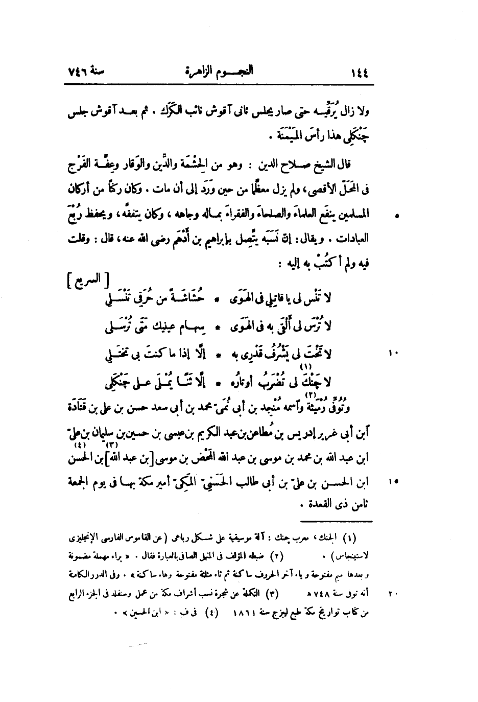 لا چنك «1» لى تضرب أوتاره ... إلّا ثنا يملى على چنكلى