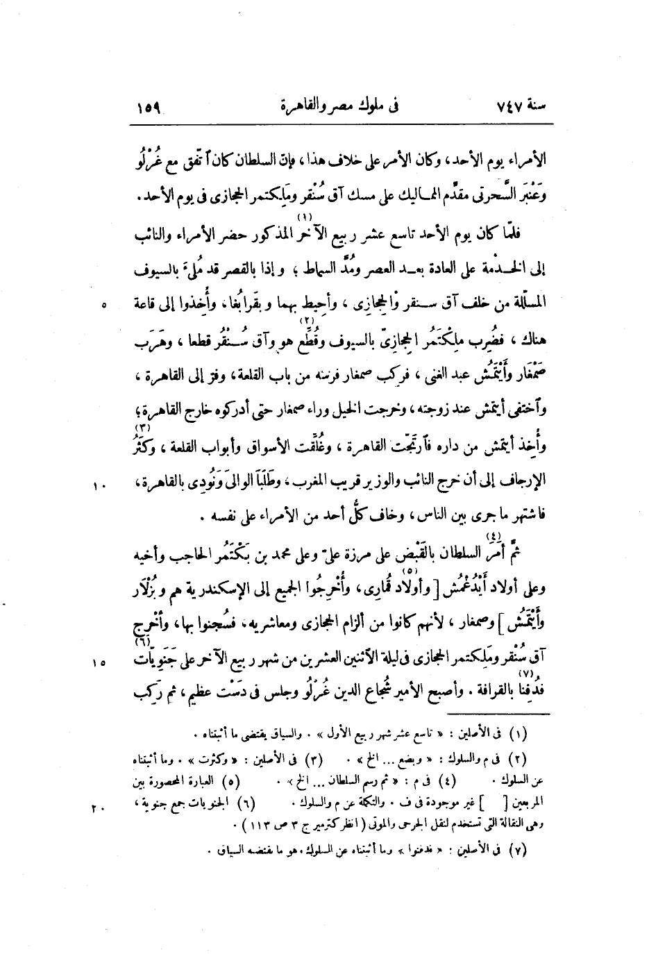 الأمراء يوم الأحد، وكان الأمر على خلاف هذا، فإنّ السلطان كان اتّفق مع غرلو وعنبر السّحرتى مقدّم المماليك على مسك آق سنقر وملكتمر الحجازى فى يوم الأحد.
