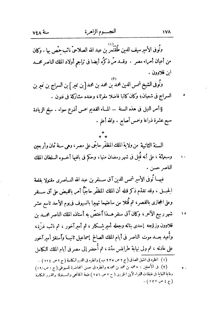 السنة الثانية من ولاية الملك المظفّر حاجّى على مصر، وهى سنة ثمان وأربعين وسبعمائة، على أنه قتل فى شهر رمضان منها، وحكم فى باقيها أخوه السلطان الملك الناصر حسن.