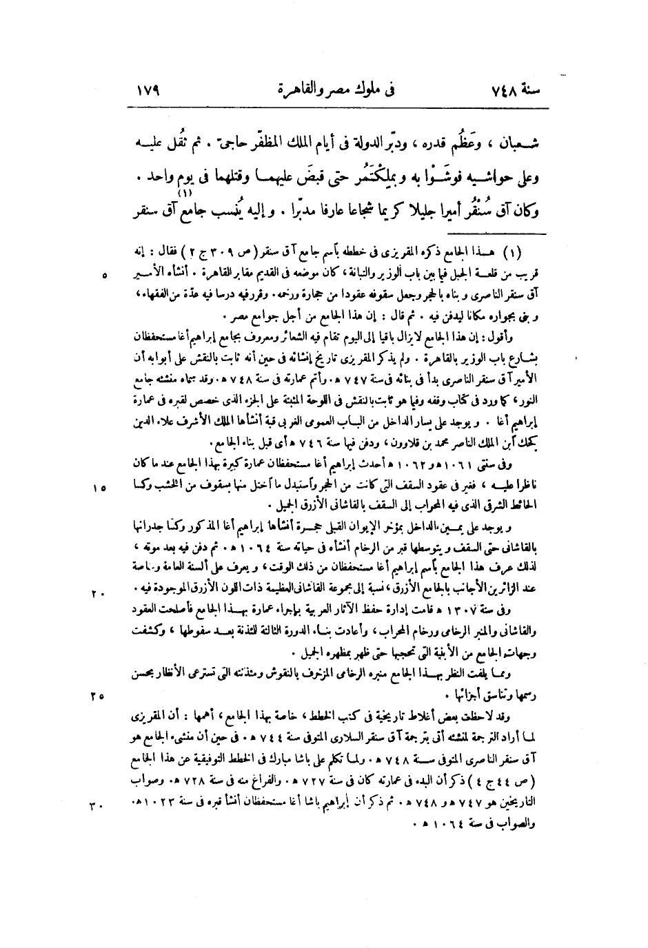 وكان آق سنقر أميرا جليلا كريما شجاعا عارفا مدبّرا. وإليه ينسب جامع «1» آق سنقر
