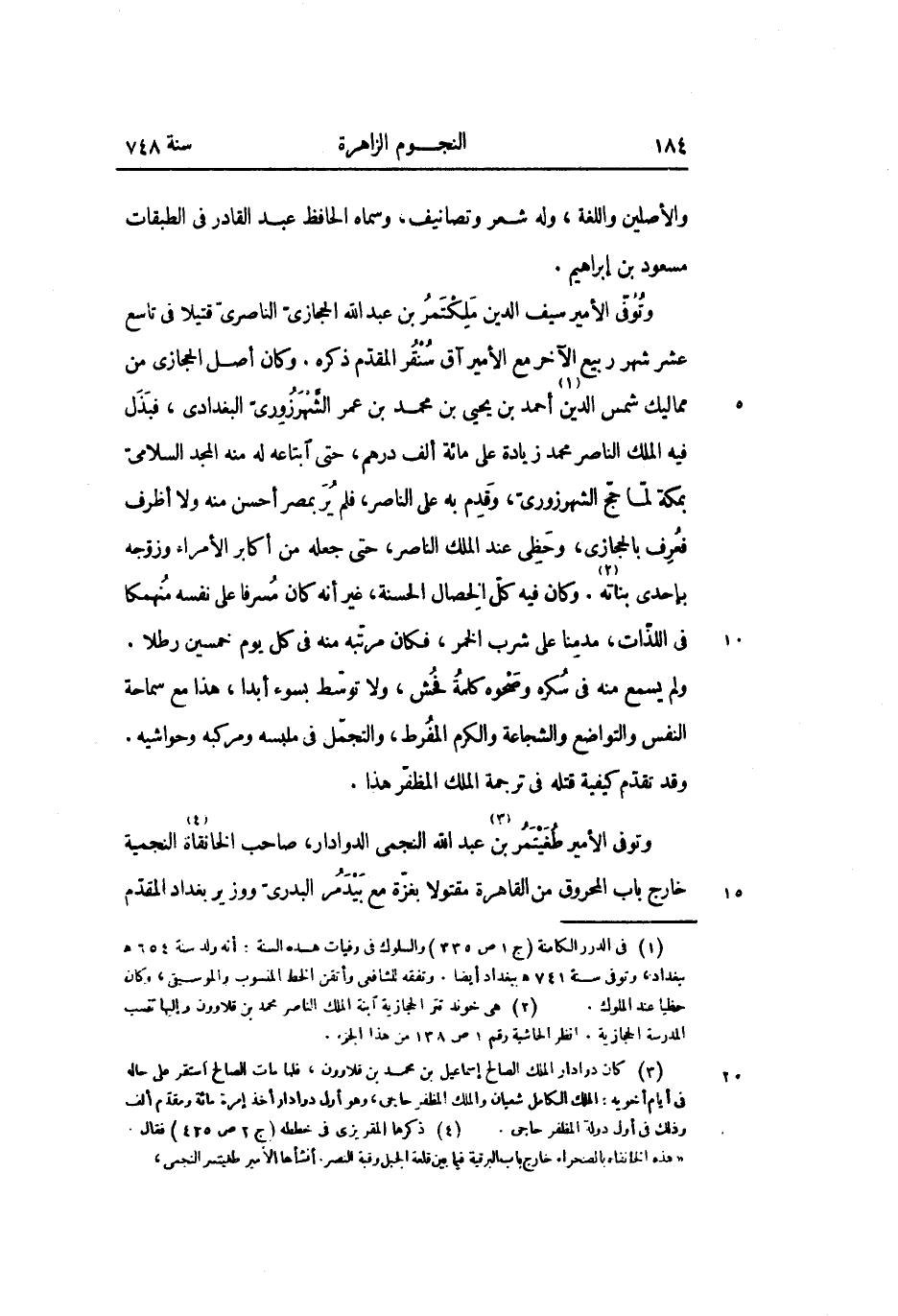 وتوفى الأمير طغيتمر بن «3» عبد الله النجمى الدوادار، صاحب الخانقاة «4» النجمية خارج باب المحروق من القاهرة مقتولا بغزّة مع بيدمر البدرىّ ووزير بغداد المقدّم