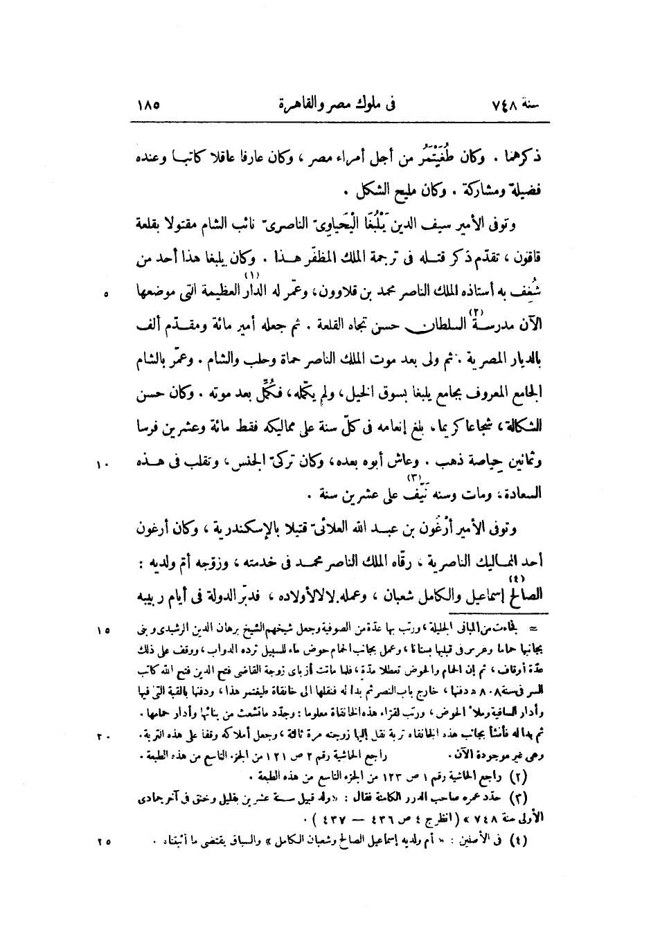 وتوفى الأمير أرغون بن عبد الله العلائىّ قتيلا بالإسكندرية، وكان أرغون أحد المماليك الناصرية، رقّاه الملك الناصر محمد فى خدمته، وزوّجه أمّ ولديه:
