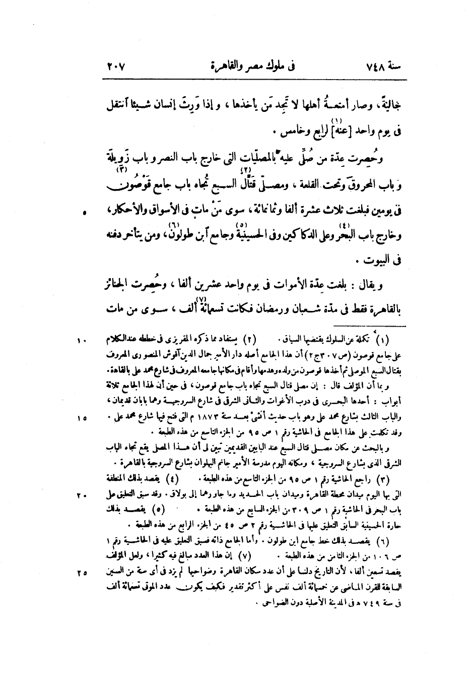 ويقال: بلغت عدّة الأموات فى يوم واحد عشرين ألفا، وحصرت الجنائز بالقاهرة فقط فى مدّة شعبان ورمضان فكانت تسعمائة «7» ألف، سوى من مات