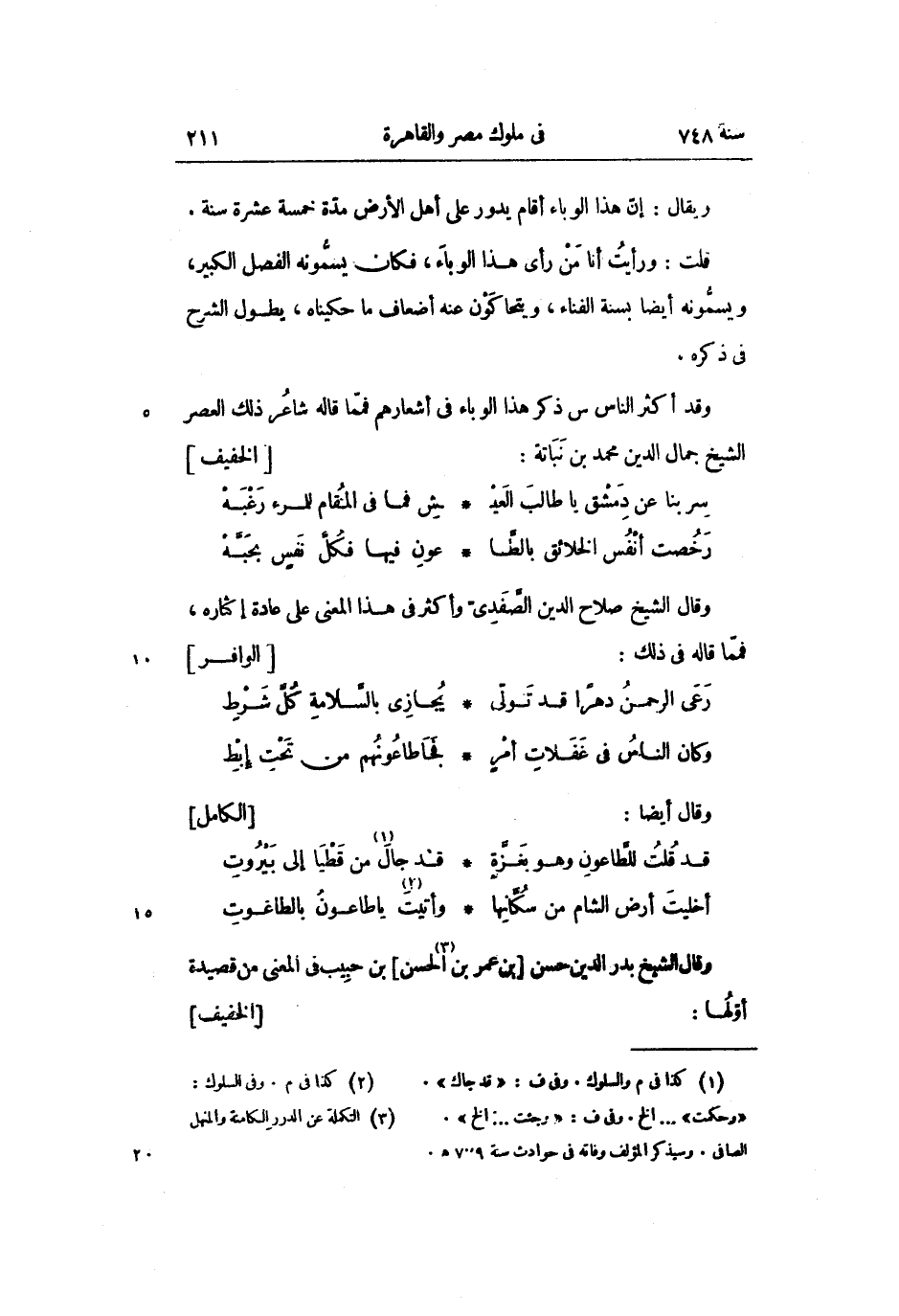 وقد أكثر الناس من ذكر هذا الوباء فى أشعارهم فممّا قاله شاعر ذلك العصر الشيخ جمال الدين محمد بن نباتة: [الخفيف]