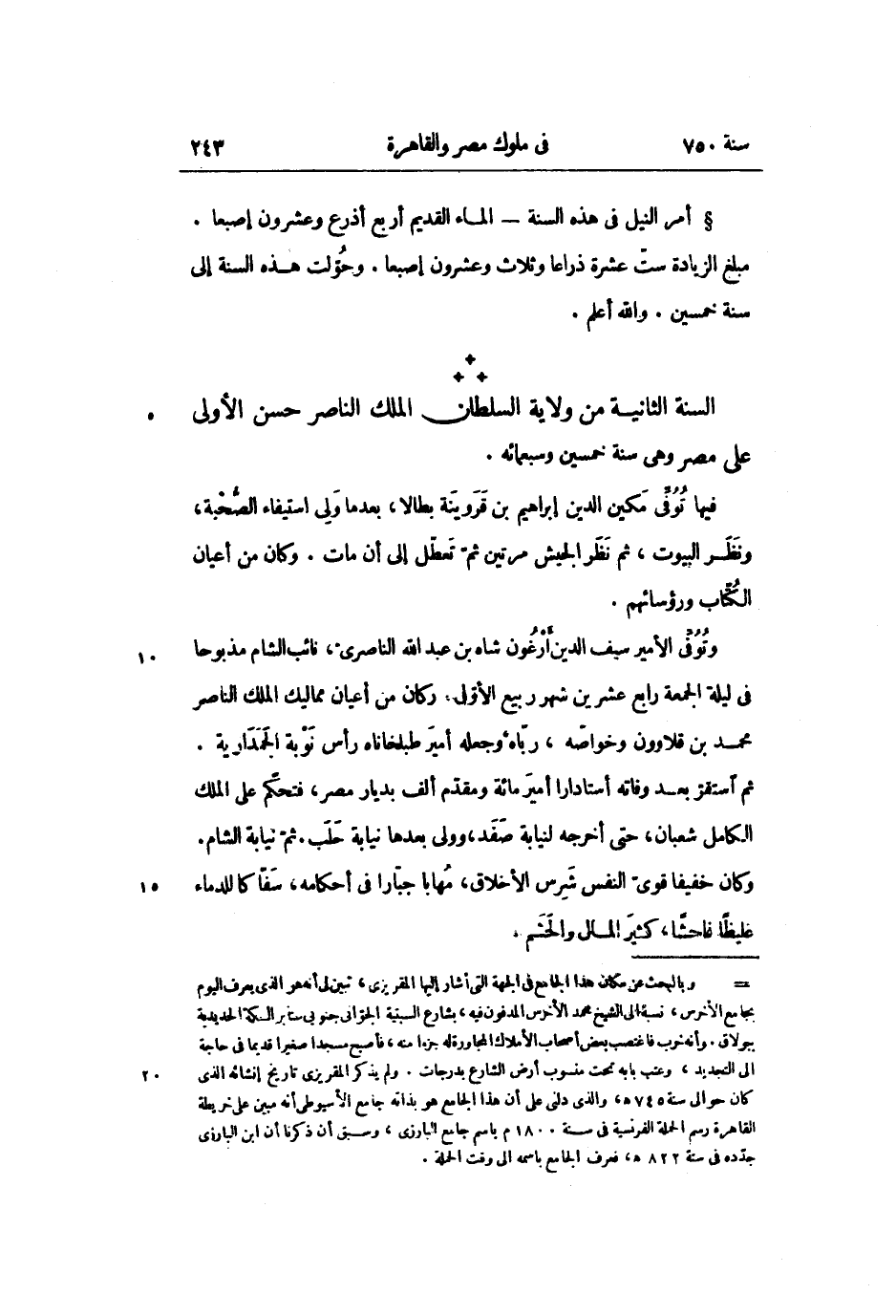 السنة الثانية من ولاية السلطان الملك الناصر حسن الأولى على مصر وهى سنة خمسين وسبعمائة.