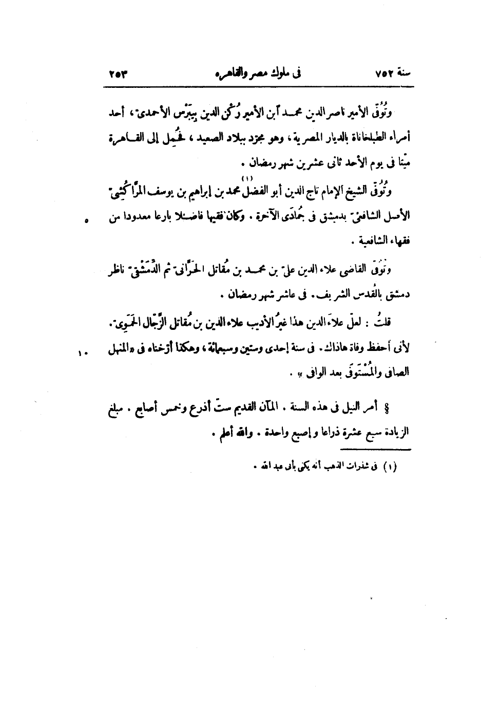 لأنى أحفظ وفاة هاذاك، فى سنة إحدى وستين وسبعمائة، وهكذا أرّخناه فى «المنهل الصافى والمستوفى بعد الوافى» .