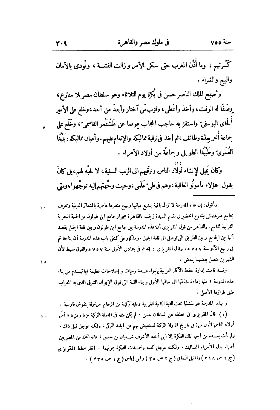 وأصبح الملك الناصر حسن فى بكرة يوم الثلاثاء وهو سلطان مصر بلا منازع، وصفا له الوقت، وأخذ وأعطى، وقرّب من اختار وأبعد من أبعد، وخلع على الأمير ألجاى اليوسفىّ واستقرّ به حاجب الحجاب عوضا عن طشتمر القاسمىّ، وخلع على جماعة أخر بعدّة وظائف، ثم أخذ فى ترقية مماليكه والإنعام عليهم. وأعيان مماليكه: يلبغا العمرىّ وطيبغا الطويل وجماعة من أولاد الأمراء.