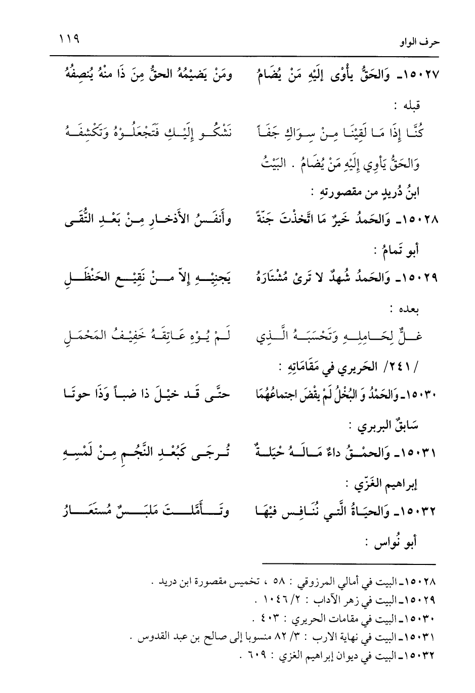 15028 - البيت في أمالي المرزوقي: 58، تخميس مقصورة ابن دريد.