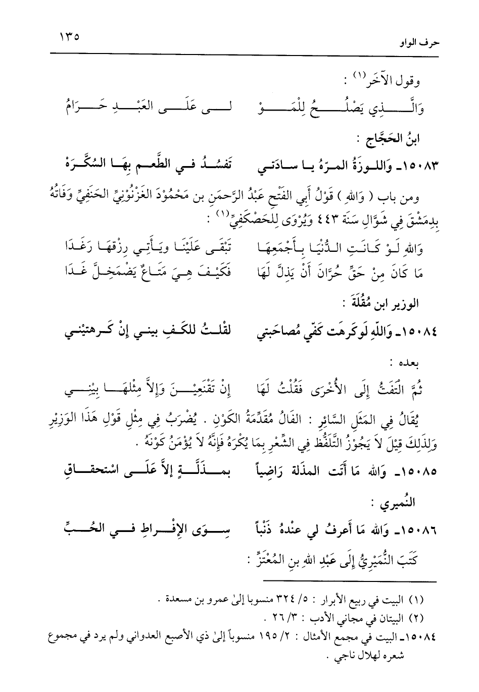 ومن باب (وَاللَّهِ) قَوْلُ أَبِي الفَتْحِ عَبْدُ الرَّحمَنِ بن مَحْمُوْدَ الغَزْنُوْنيِّ الحَنَفِيِّ وَفَاتُهُ بِدِمَشْقَ في شَوَّالِ سَنَة 443 وَيُرْوَى لِلحَصْكَفِيِّ (¬2):
