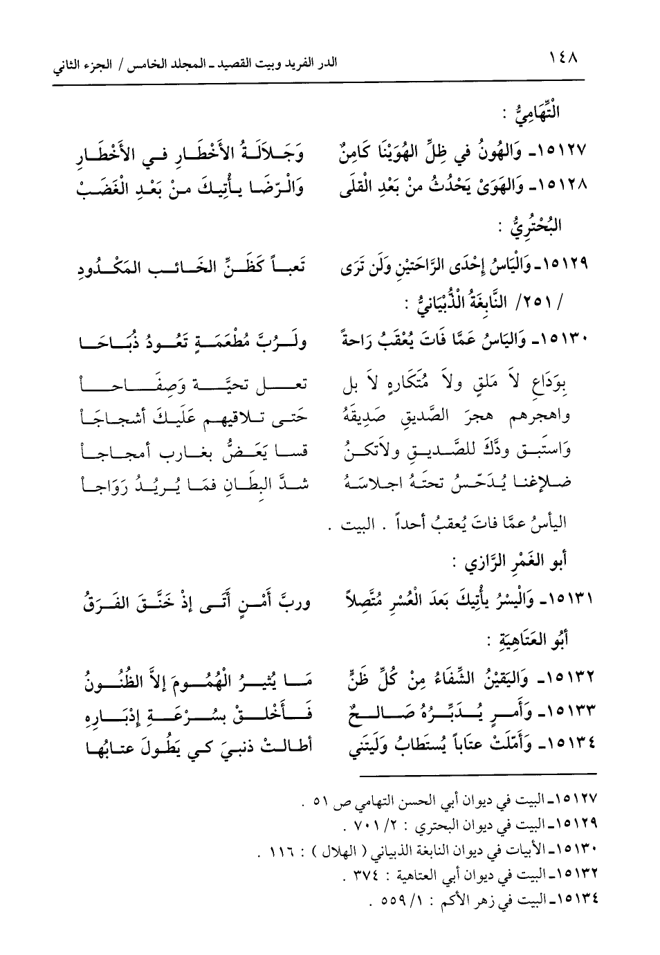 15130 - الأبيات في ديوان النابغة الذبياني (الهلال): 116.