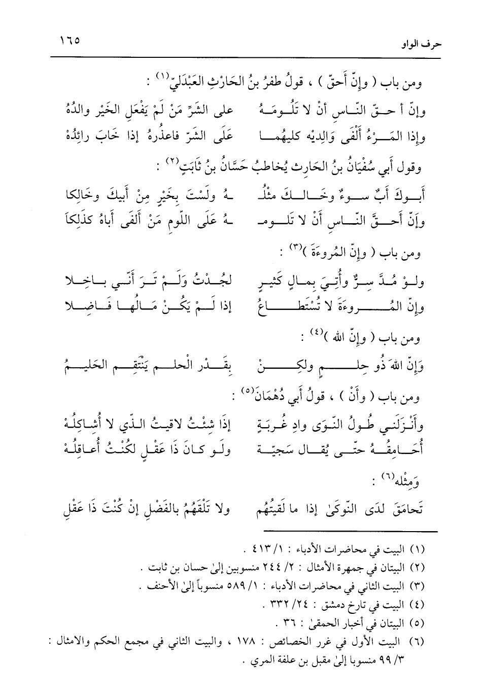 (¬3) البيت الثاني في محاضرات الأدباء: 1/ 589 منسوبًا إلى الأحنف.