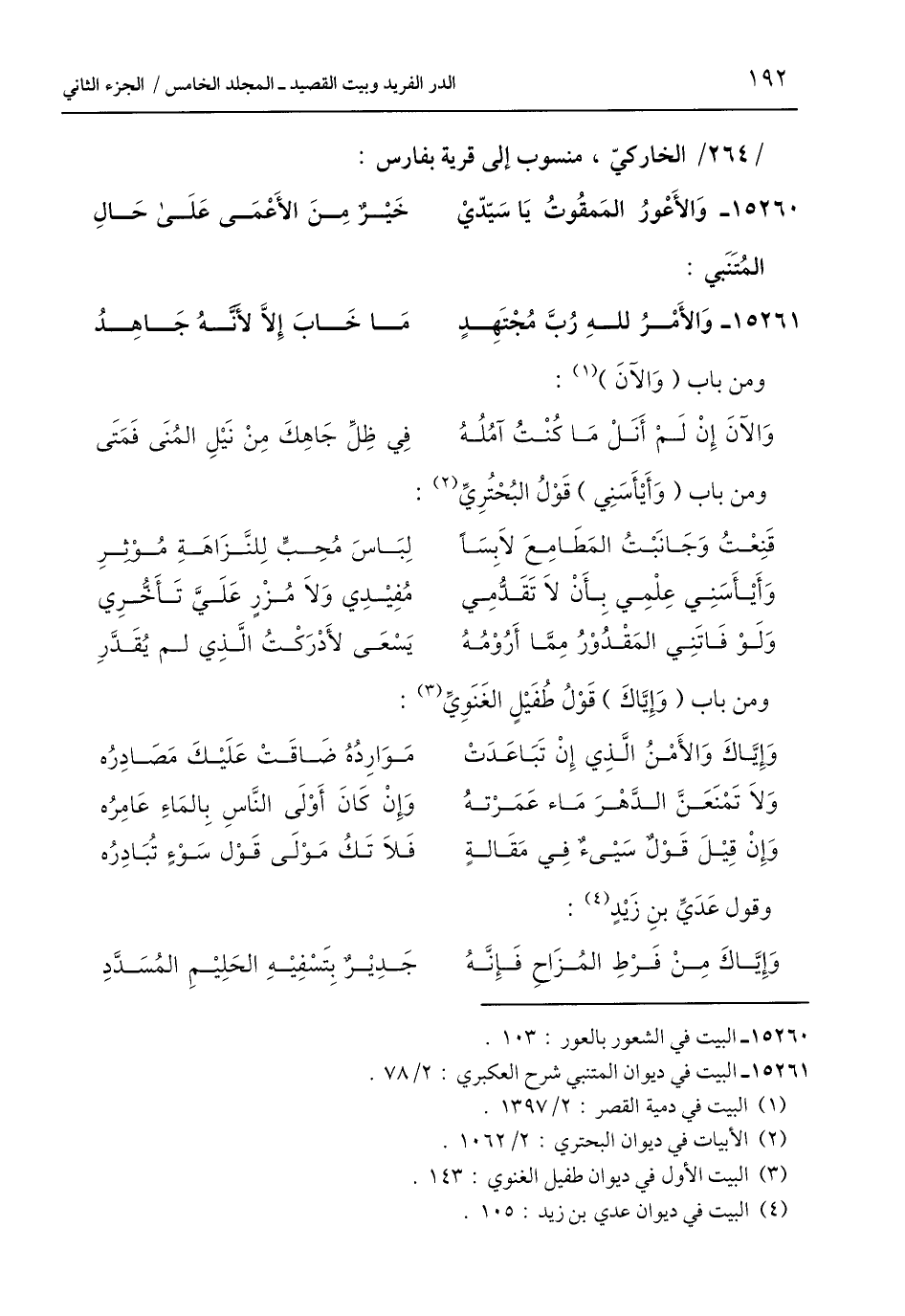 15261 - البيت في ديوان المتنبي شرح العكبري: 2/ 78.