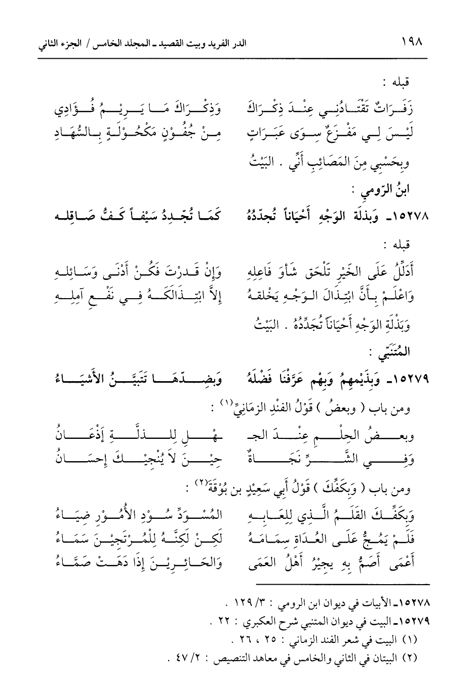 ومن باب (وبعضُ) قَوْلُ الفنْدِ الزمَانِيِّ (¬1):