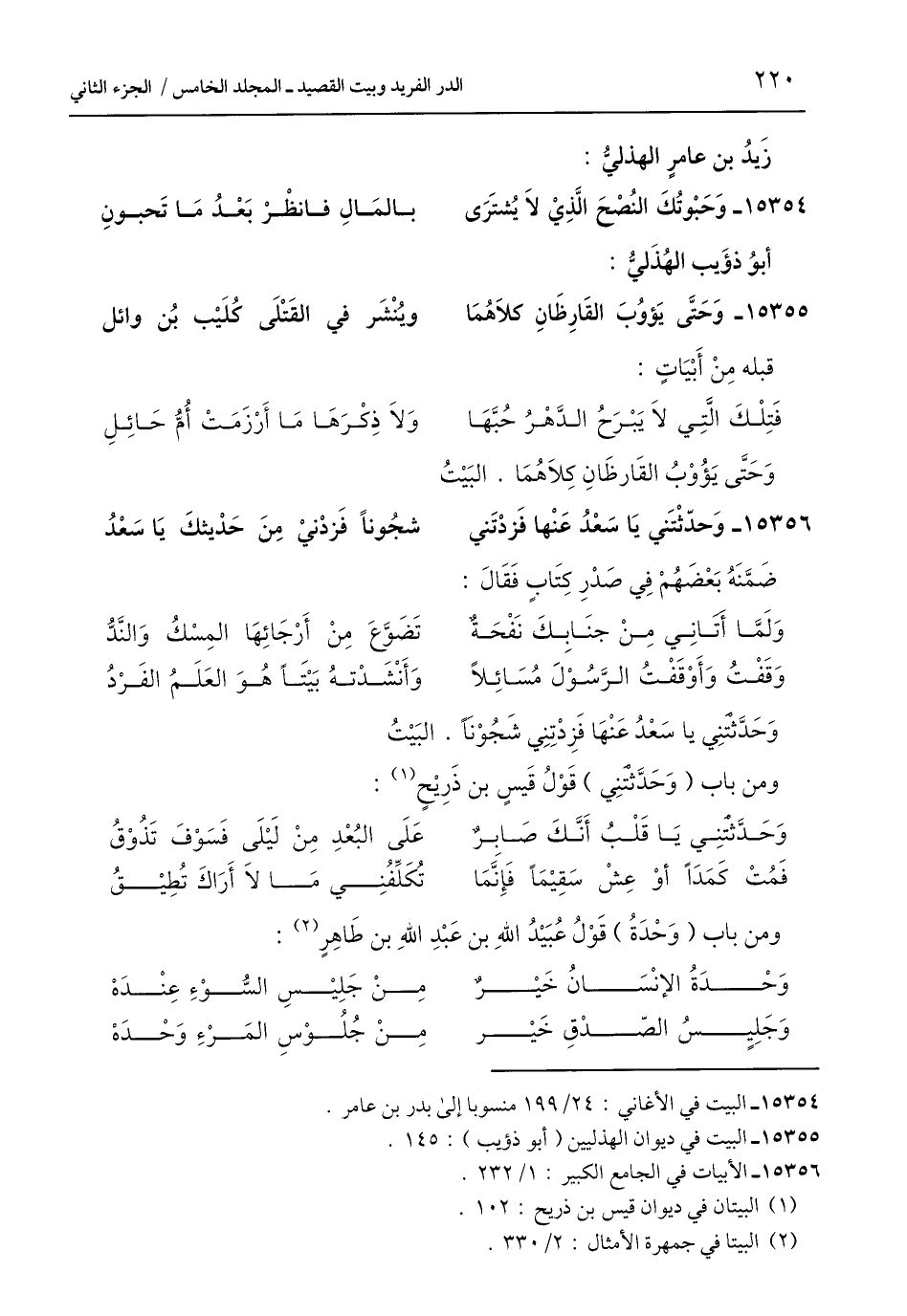 وَقَفْتُ وَأَوْقَفْتُ الرَّسُوْلَ مُسَائِلًا ... وَأَنْشَدْتهُ بَيْتًا هُوَ العَلَمُ الفَرْدُ