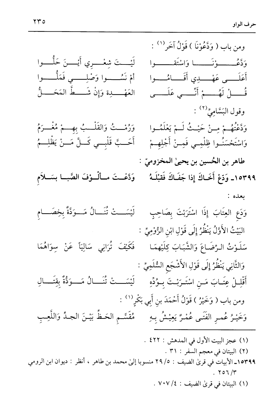 15399 - وَدع أَخَاكَ إِذَا جَفَاكَ فَقبْلَهُ ... وَدَّعْتَ مألوْفَ الصَّبا بسَلَامِ