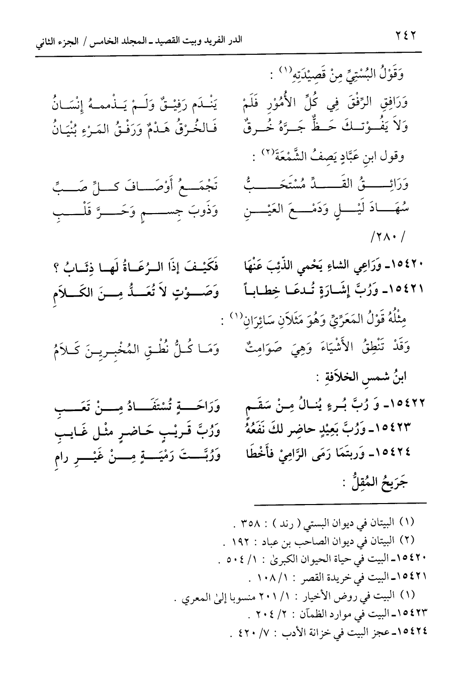 وَقَوْلُ البُسْتِيِّ مِنْ قَصِيْدَتِهِ (¬1):