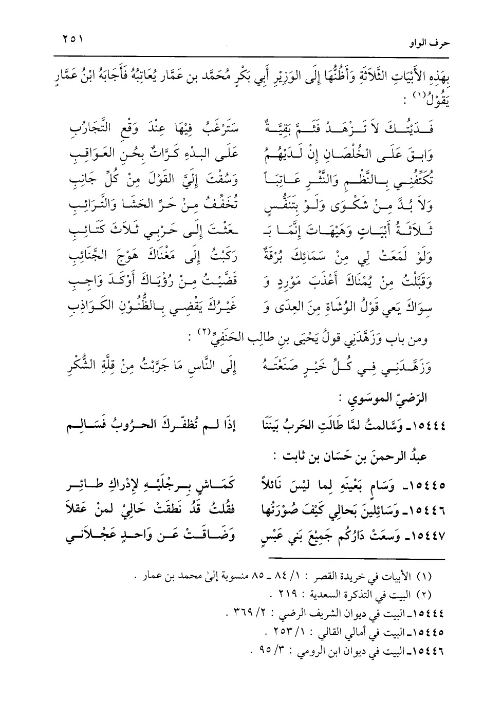 (¬1) الأبيات في خريدة القصر: 1/ 84 - 85 منسوبة إلى محمد بن عمار.