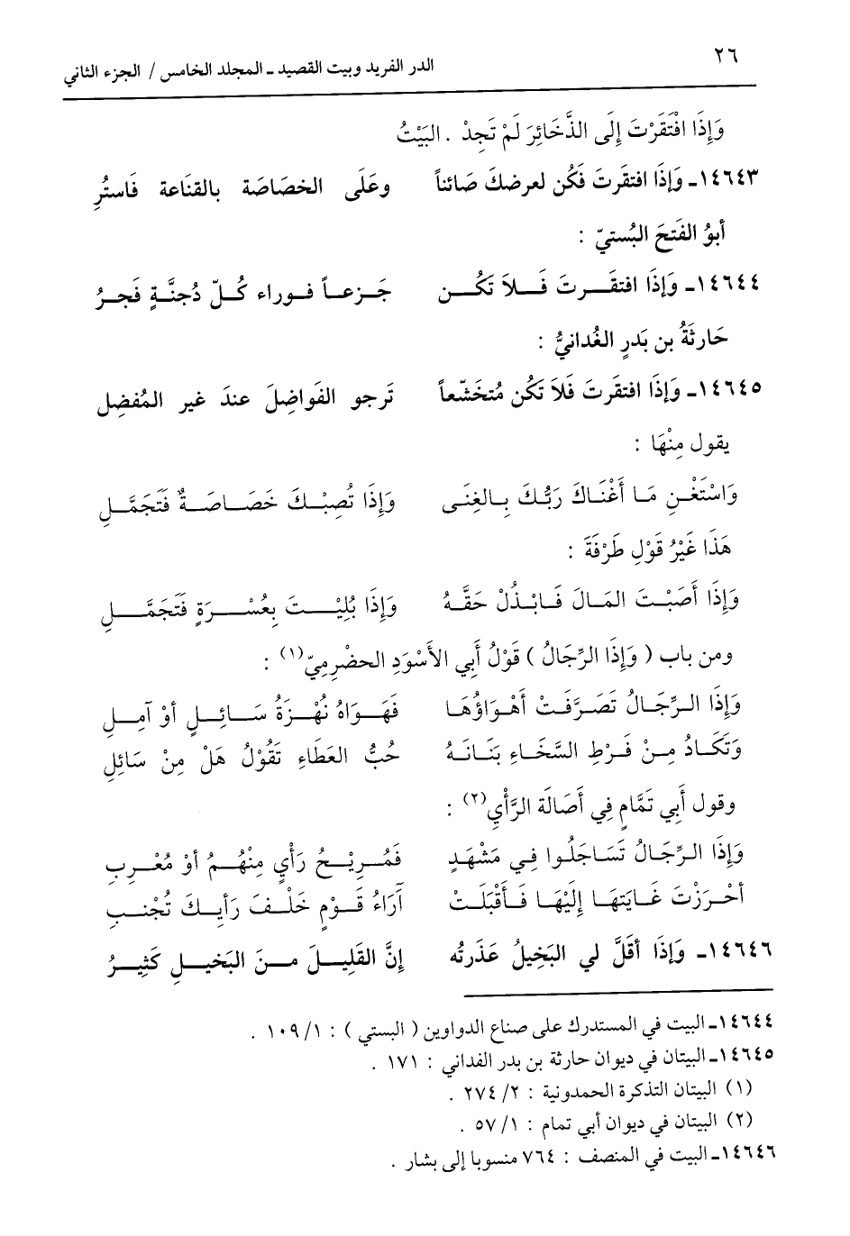 14645 - وَإِذَا افتقَرتَ فَلَا تكُن مُتخَشّعًا ... تَرجو الفَواضِلَ عندَ غير المُفضِل