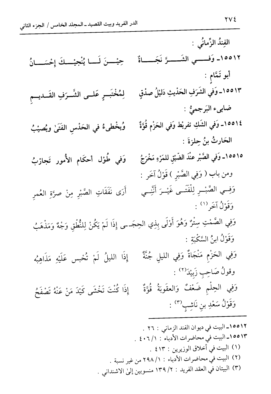 15513 - وَفي الشَرَفِ الحَدْيثِ دَليْلُ صدْقٍ ... لِمُخْتَبرٍ عَلى الشَّرَفِ القَديمِ