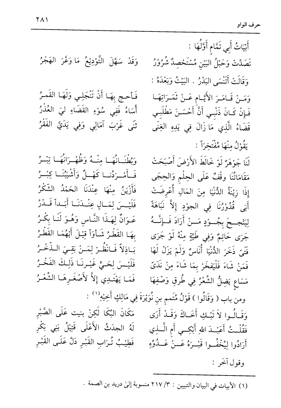 أَبْيَاتُ أَبِي تَمَّامٍ أَوَّلُهَا: