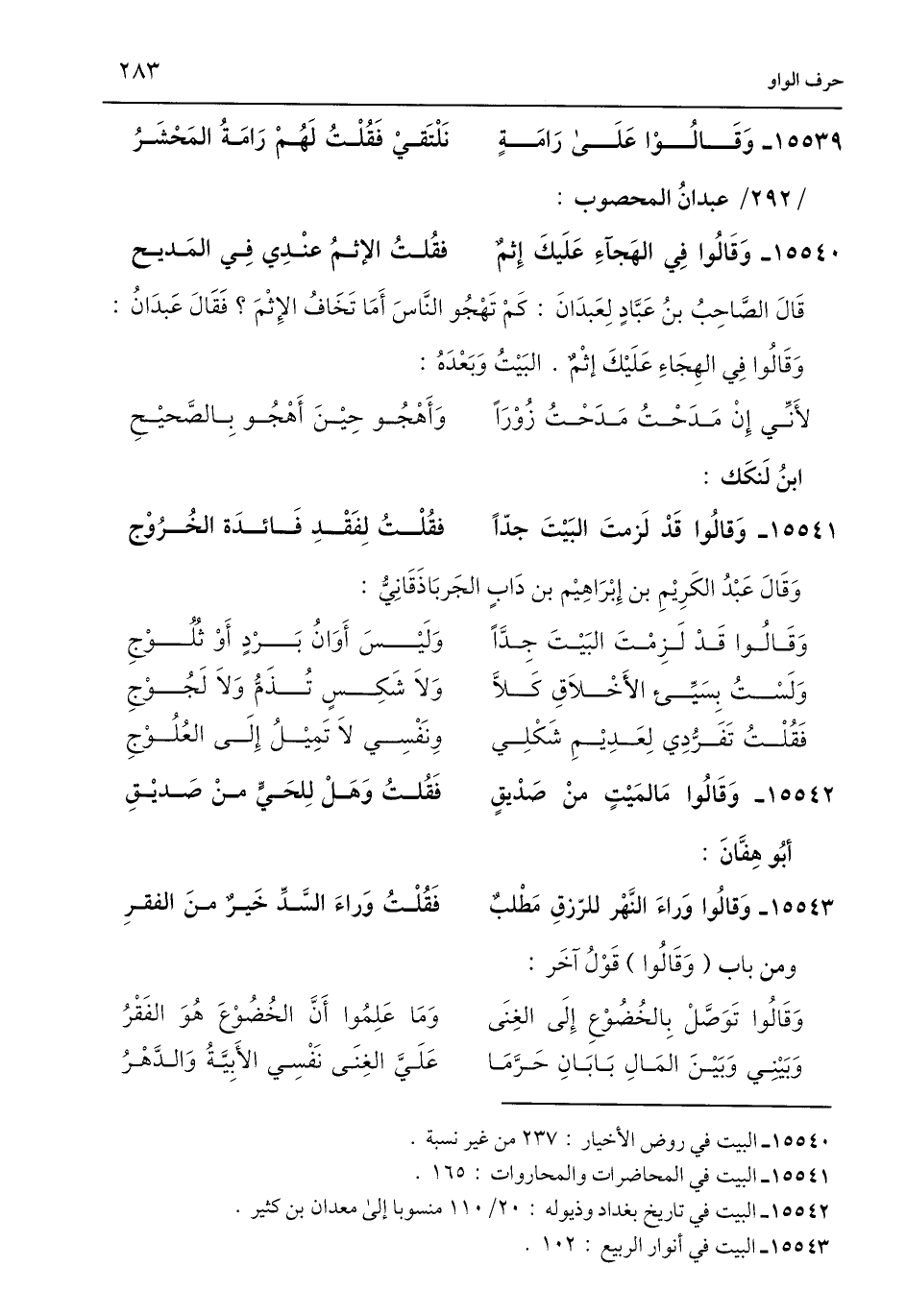 15540 - وَقَالُوا فِي الهَجاءِ عَلَيكَ إِثمٌ ... فقُلتُ الإثمُ عنْدِي فِي المَديح