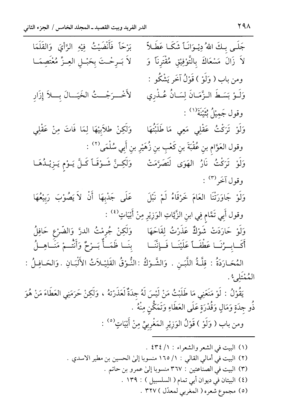 ومن باب (وَلَوْ) قَوْلُ الوَزِيْرِ المَغْرِبِيِّ مِنْ أَبْيَاتٍ (¬5):