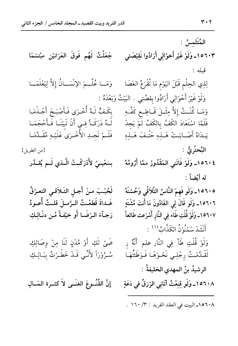 15608 - البيت في العقد الفريد: 3/ 160.
