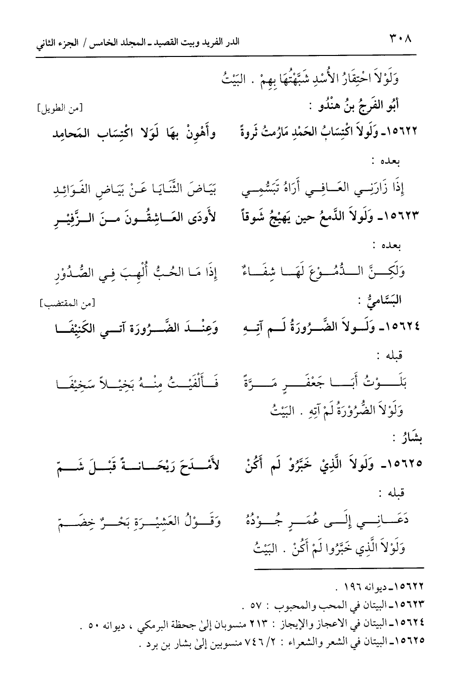 15622 - وَلَولَا اكتِسَابُ الحَمْدِ مَا رُمتُ ثَروةً ... وأَهْوِنْ بهَا لَوَلا اكتِسَاب المَحامِد