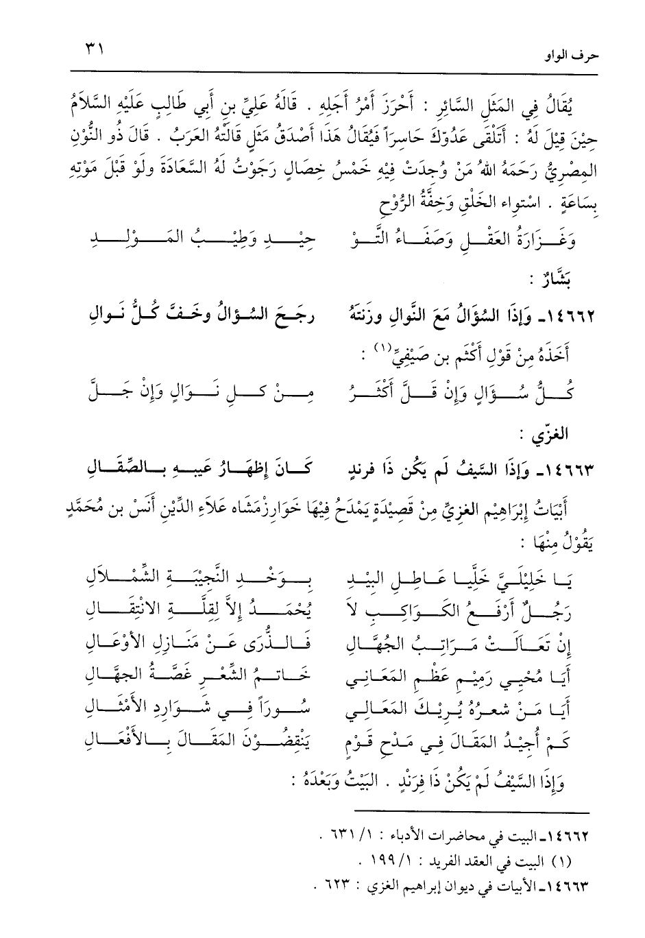 14663 - وَإِذَا السَّيفُ لَم يَكُن ذَا فرندٍ ... كَانَ إِظهَارُ عَيبهِ بالصِّقَالِ