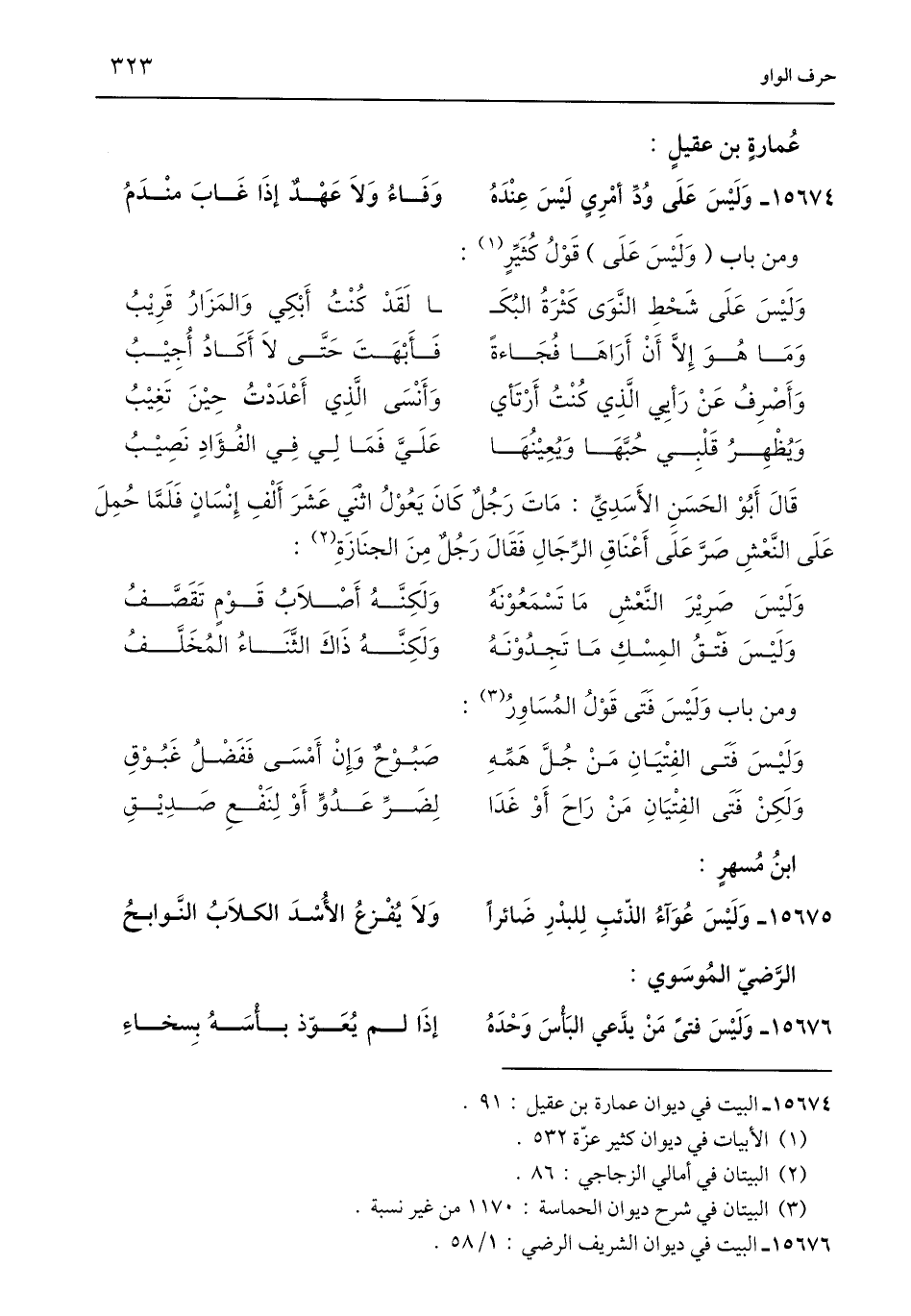 ومن باب (وَلَيْسَ عَلَى) قَوْلُ كُثَيِّرٍ (¬1):