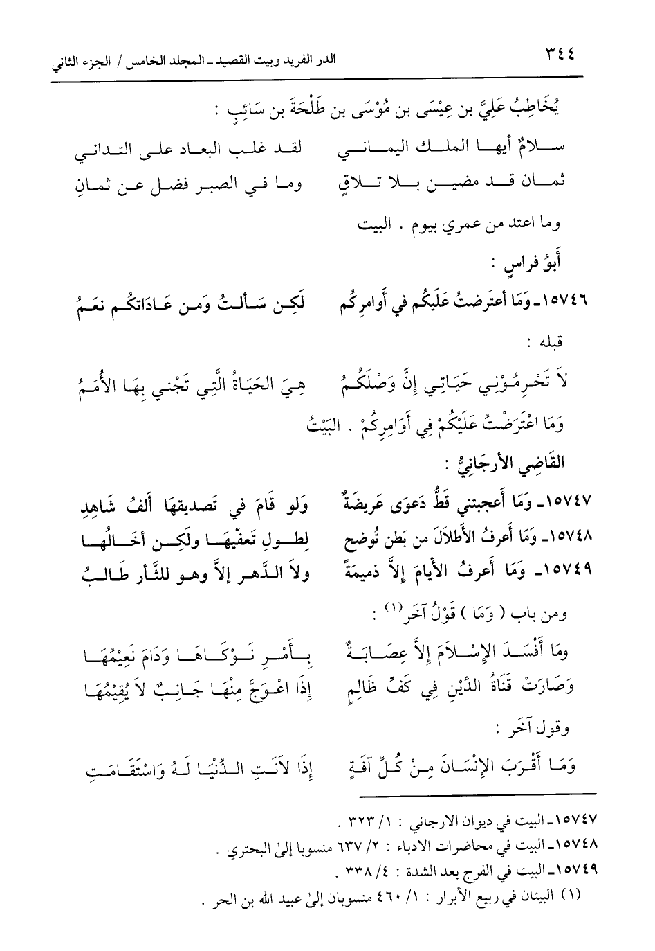 15747 - البيت في ديوان الأرجاني: 1/ 323.