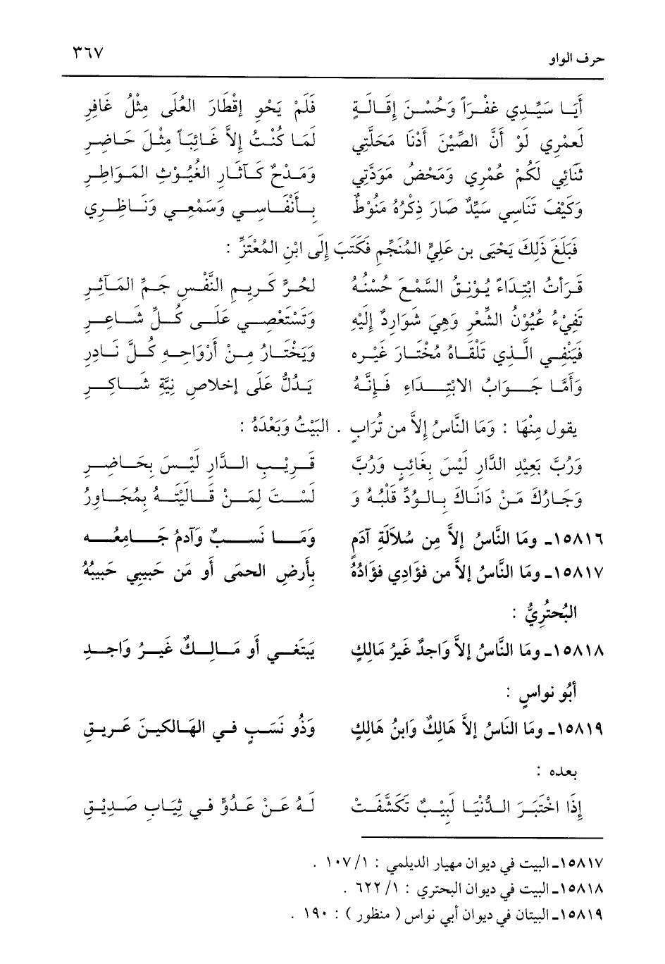 15817 - ومَا النَّاسُ إلَّا من فؤَادِي فؤَادُهُ ... بِأَرضِ الحمَى أَو مَن حَبيبِي حَبيبُهُ