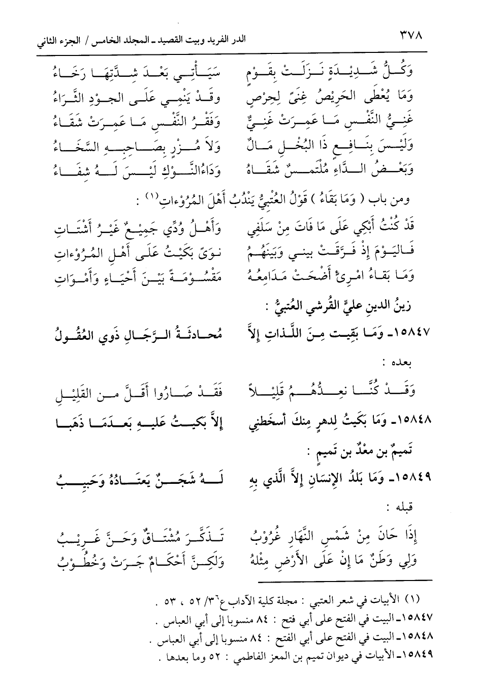(¬1) الأبيات في شعر العتبي: مجلة كلية الآداب ع 6، 3/ 52، 53.
